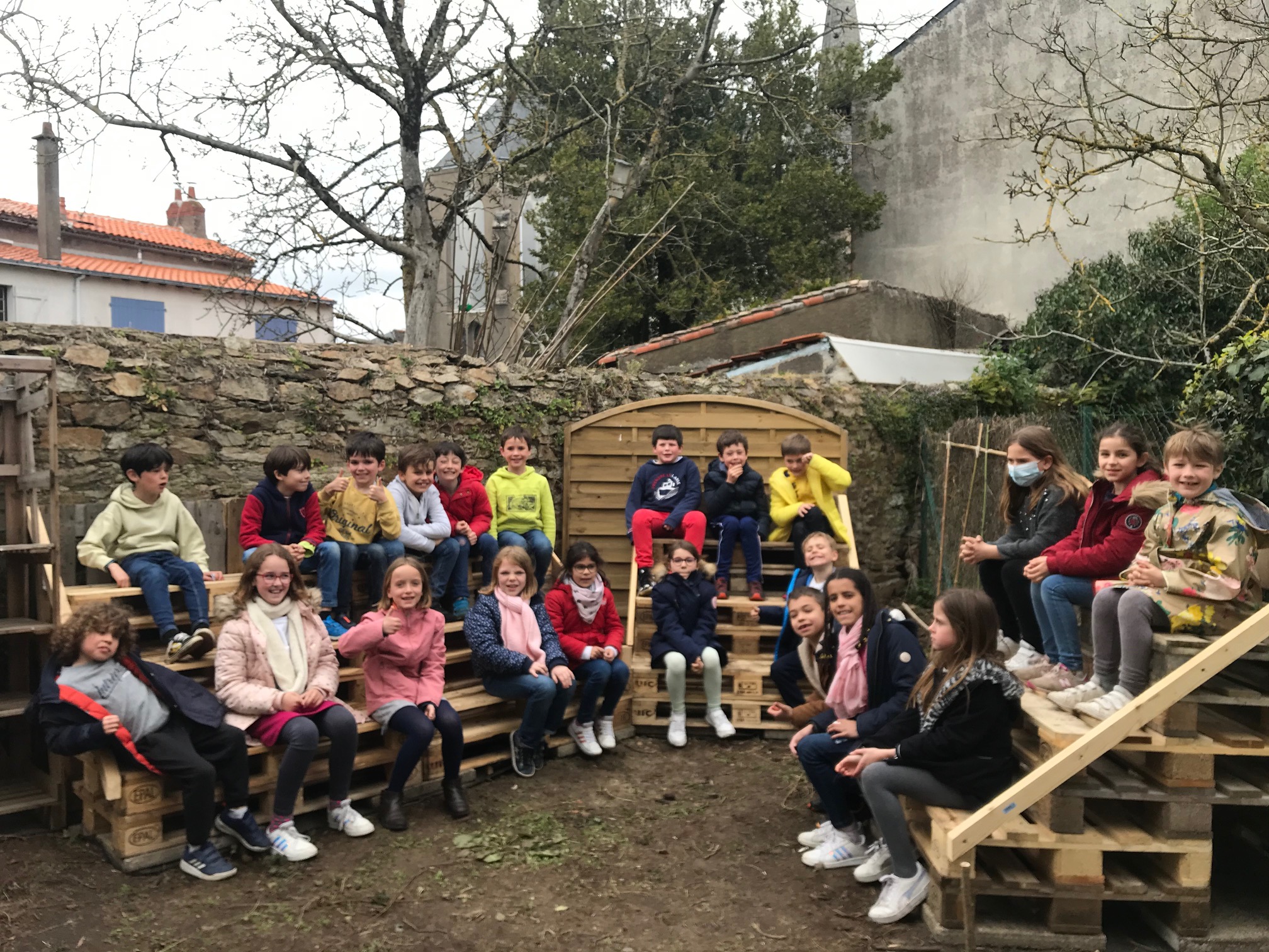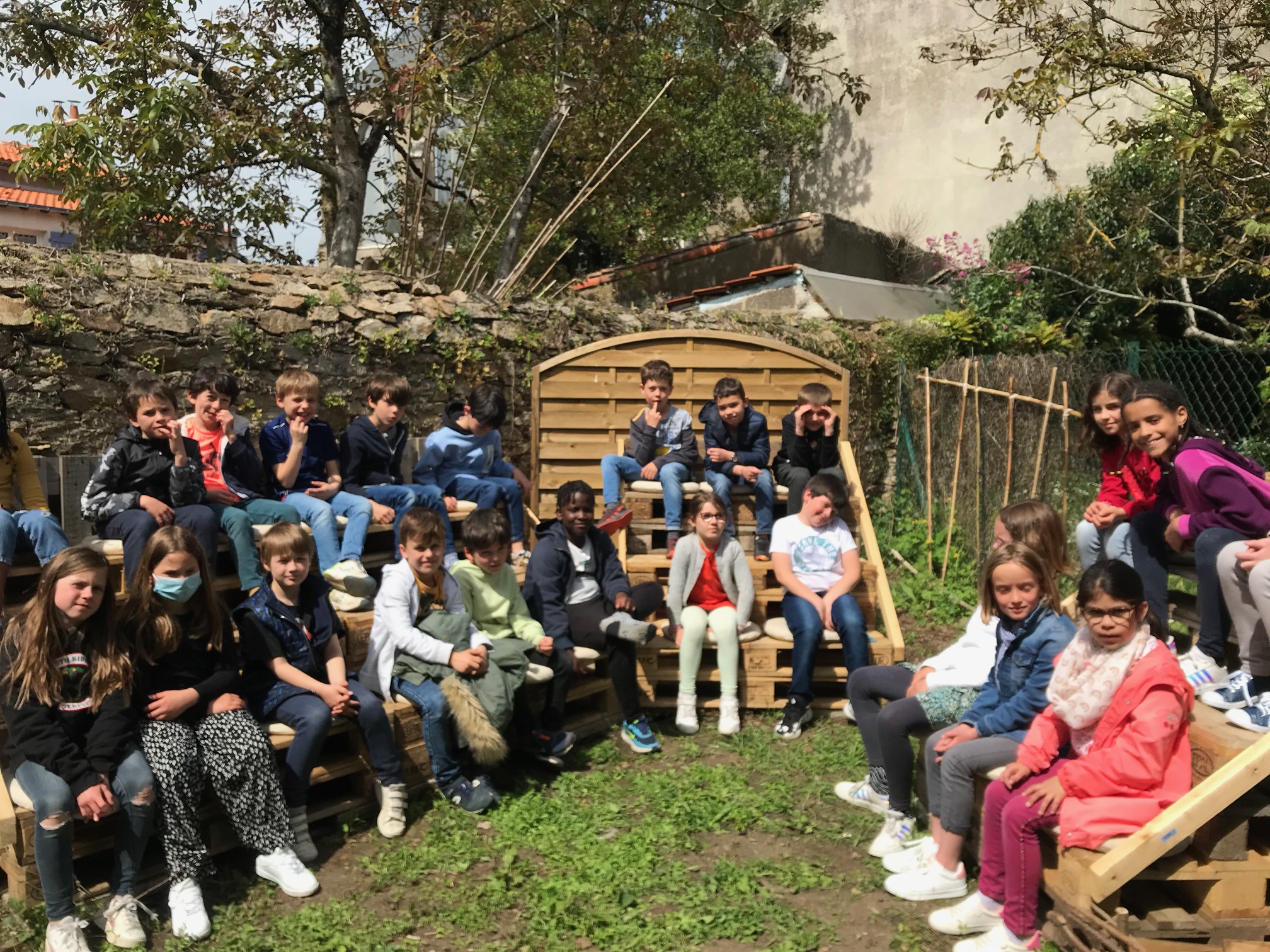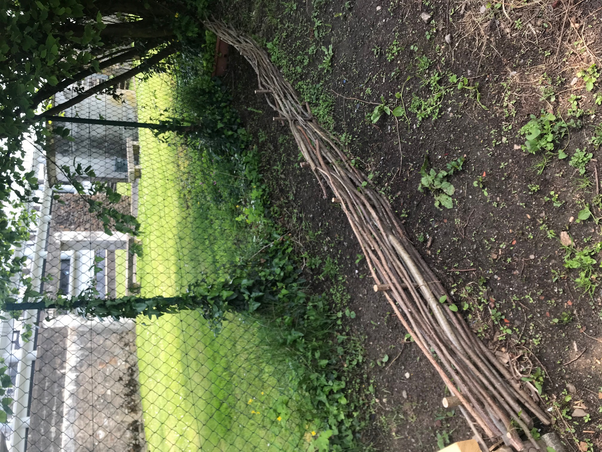 Les éco-délégués de chaque classe ont réalisé un beau plessis en branches de noisetier il y a déjà plusieurs semaines. Plus tard, nous pourrons y mettre du terreau et semer de jolies fleurs…