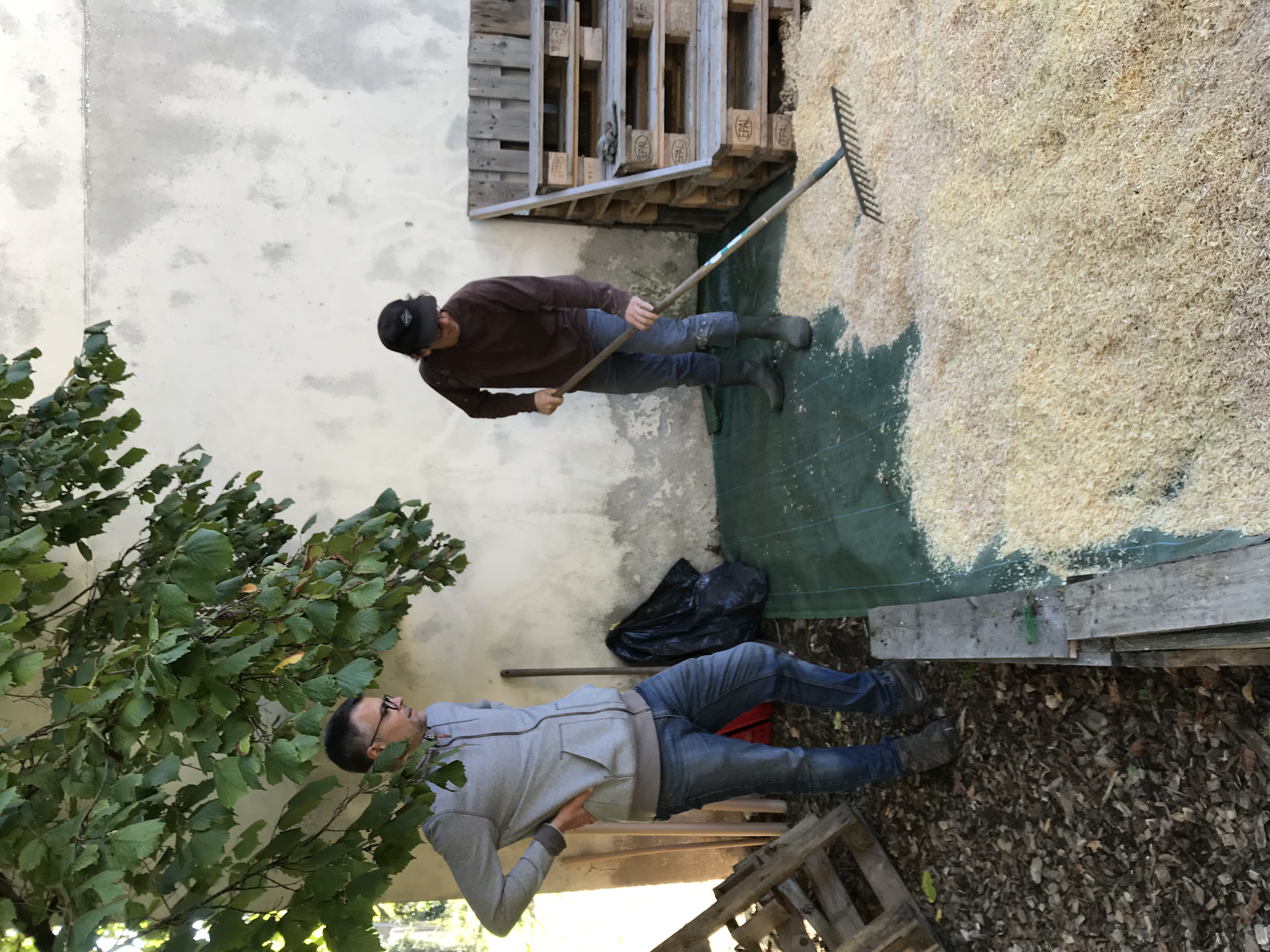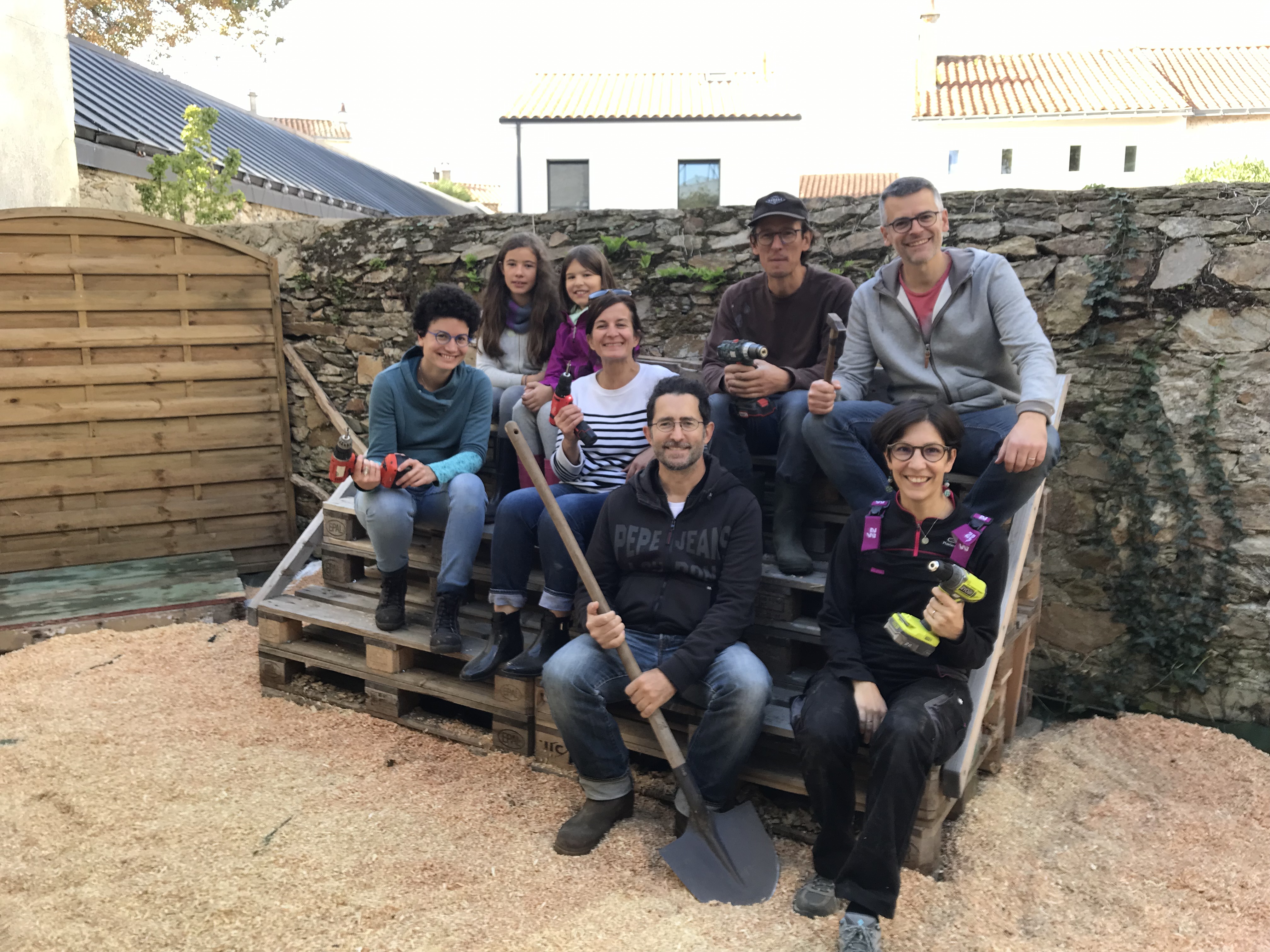 C’est sous un beau soleil que nous nous sommes retrouvés une poignée avec pour mission de nettoyer la zone compost, bâcher le sol et déplacer la classe extérieure dans cet espace ombragé, ce qui permettra une utilisation plus fréquente dès les beaux jours.