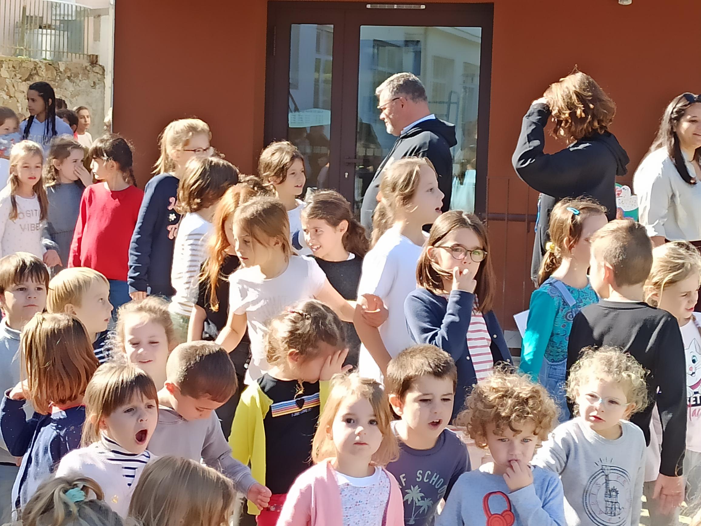 Les élèves du collège avaient préparé un chant avec leur professeur de musique et une petite saynète en anglais. Les élèves de l’école ont chanté leur chanson fil rouge de l’année “Cœur à cœur” en lien avec l’association Initiatives Mécénat cardiaque.