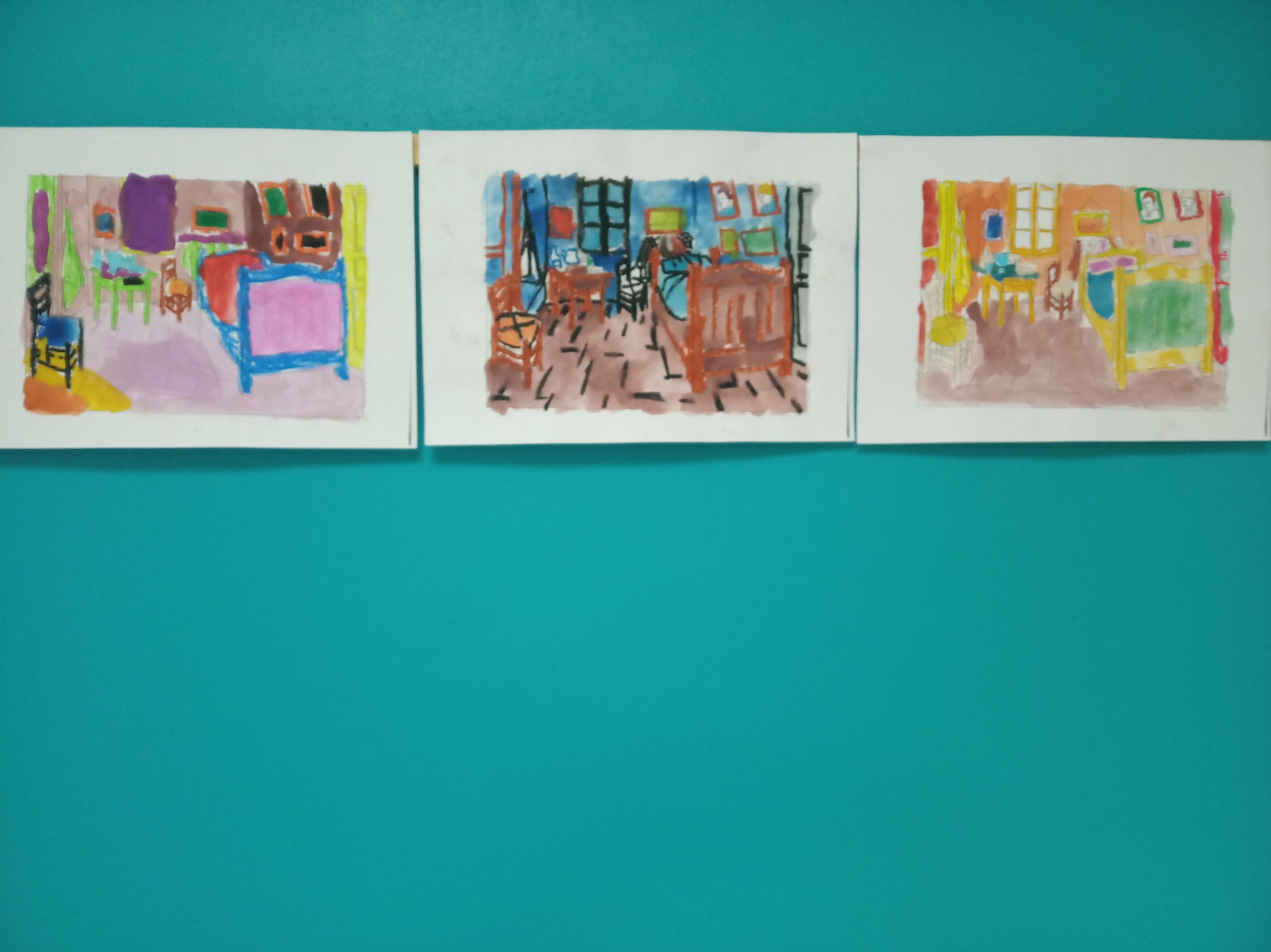Les Arts en CPPar Agnès / 15 octobre 2022 Après nos portraits aux coiffures insolites réalisées à l’encre soufflée, les CP ont (re)visité la chambre de Van Gogh à la craie grasse et la peinture.