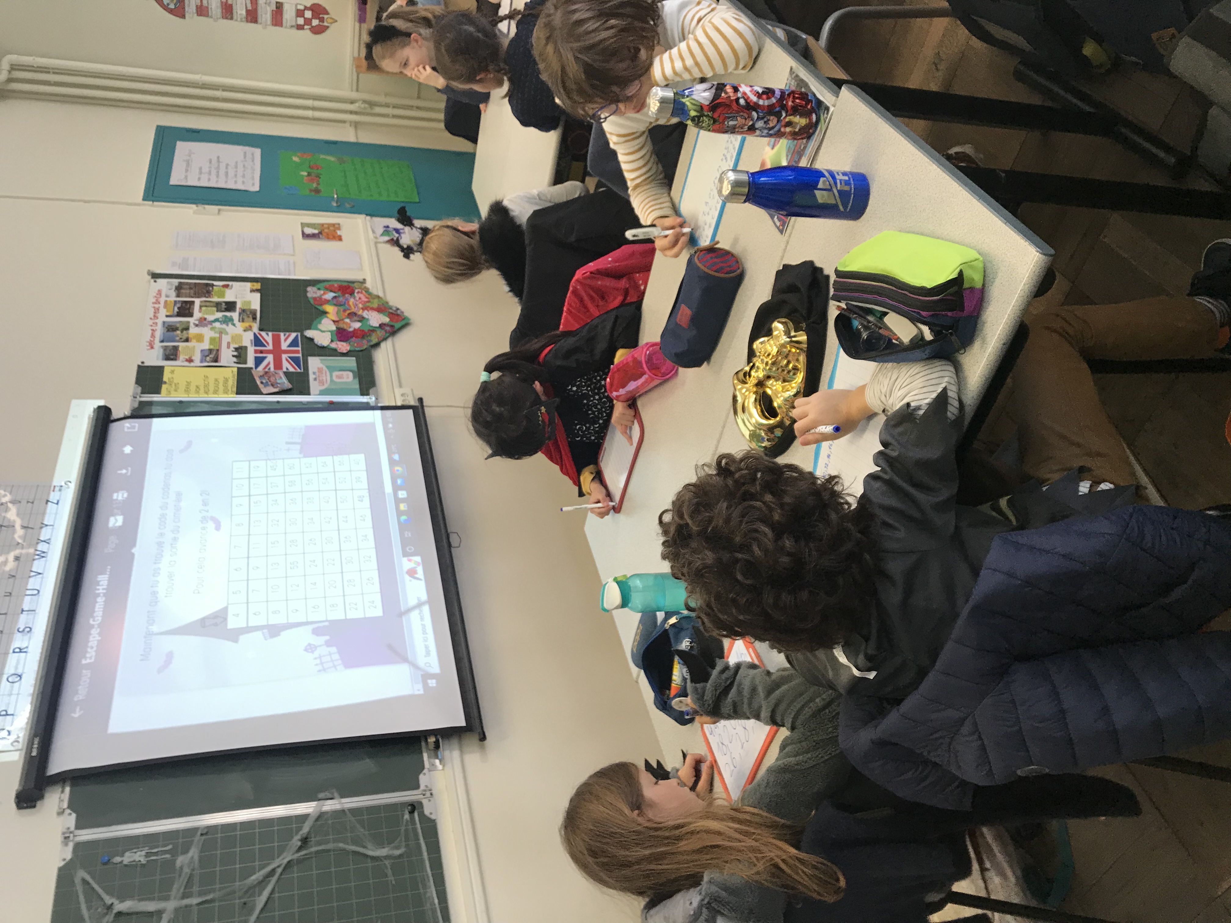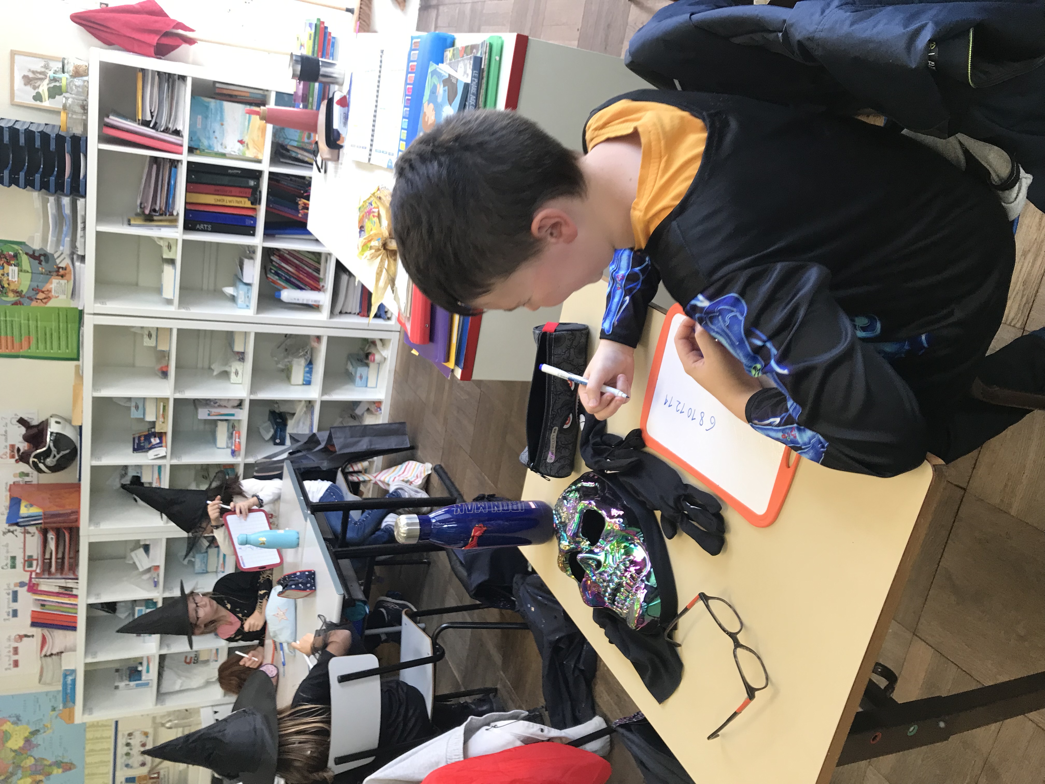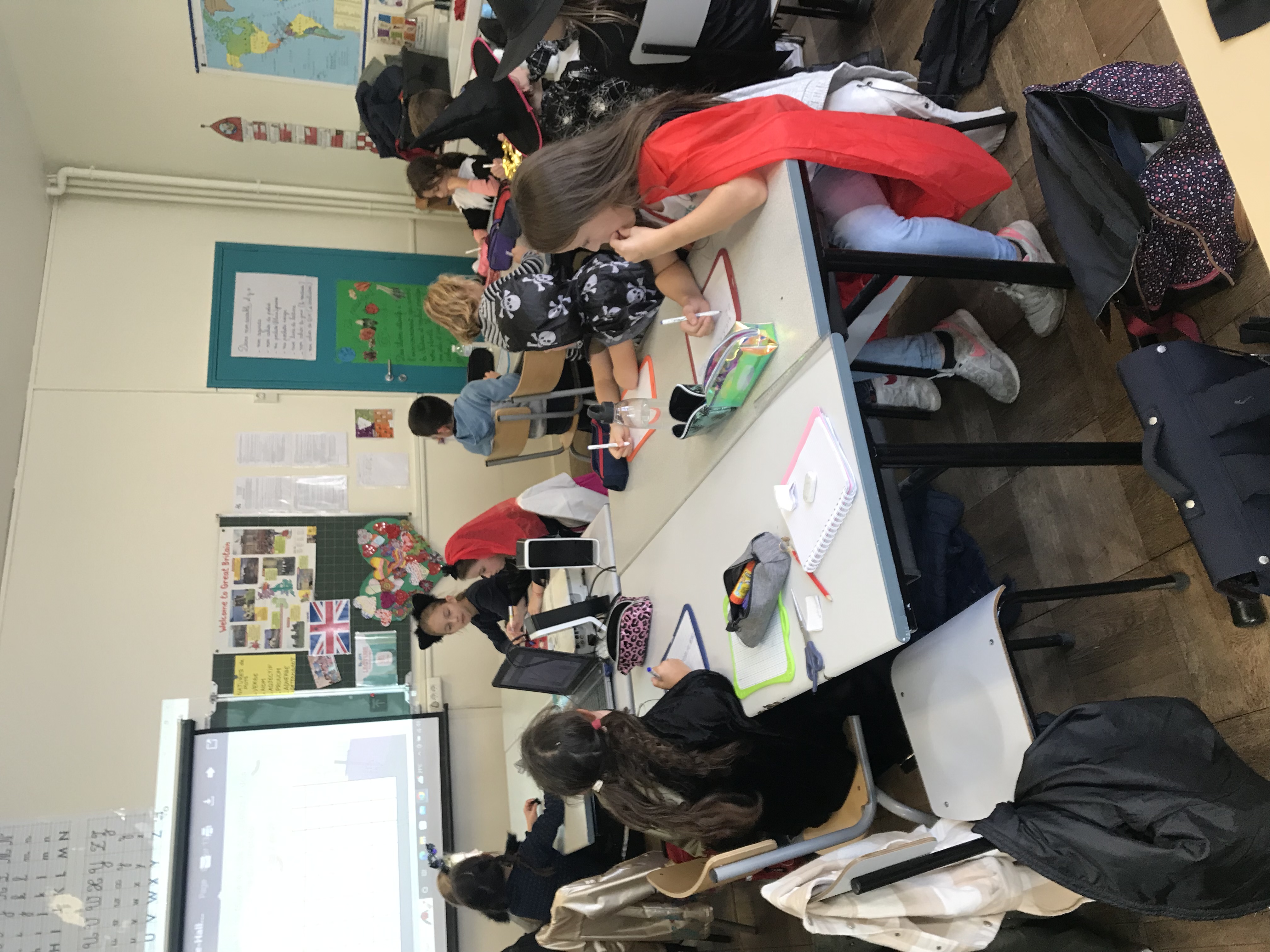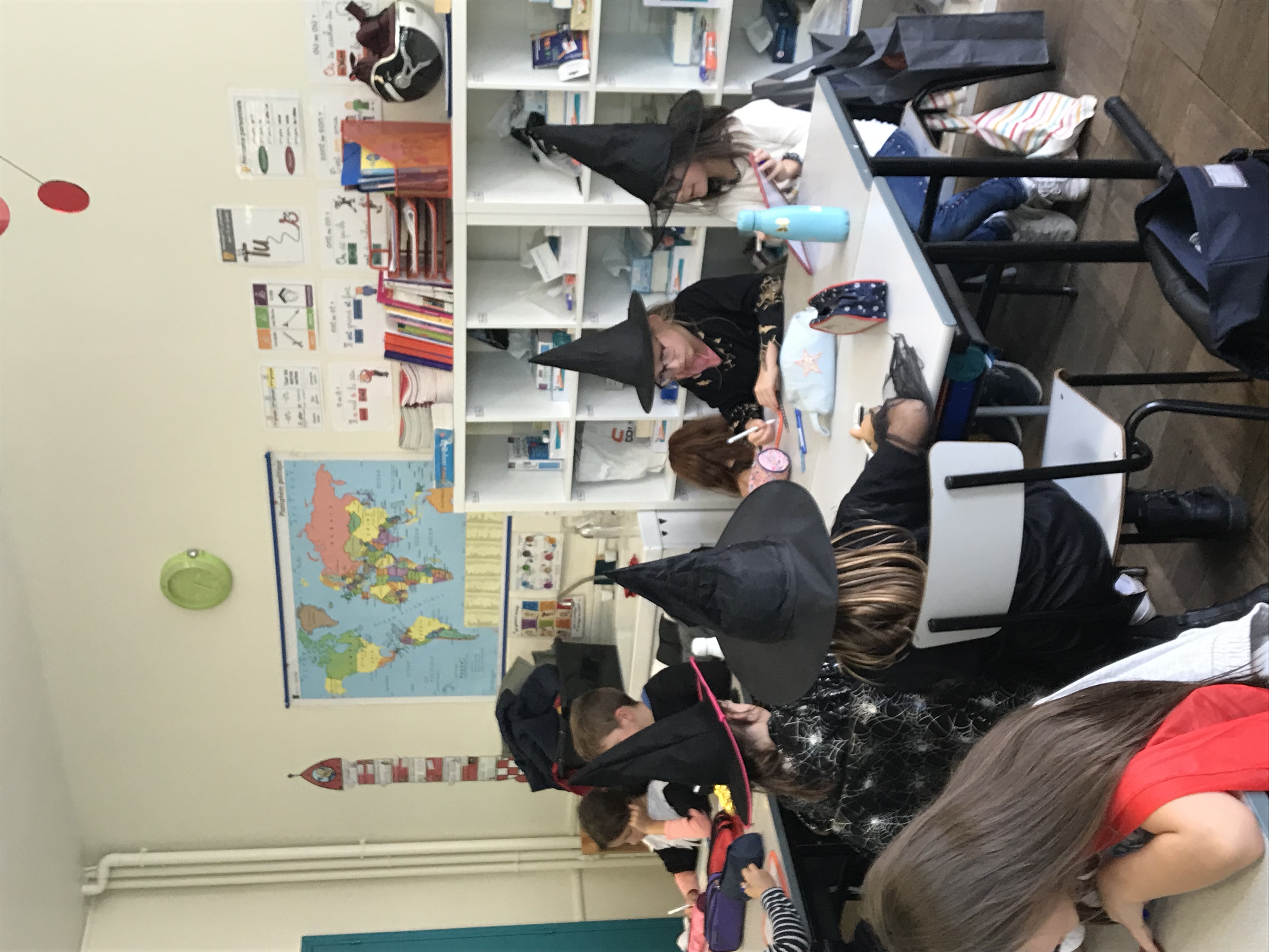 Déguisés, nous avons relevé des défis en équipe de 4 ou 5 autour des maths et du français. Il parait que c’était du travail… Nous, on ne s’est aperçu de rien et on s’est bien amusés! Tous les élèves ont pu sortir pour partir deux semaines en vacances. Ouf!
