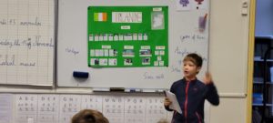 ExposésPar Catherine / 15 novembre 2022 Les exposés sur les pays de l’union européenne ont commencé en CM1. Arya nous a parlé de l’Irlande. Elle a utilisé un vocabulaire adapté à son âge et a su rendre son exposé intéressant par son aisance verbale. Les élèves étaient très attentifs. Bravo Arya pour ce bel exposé !
