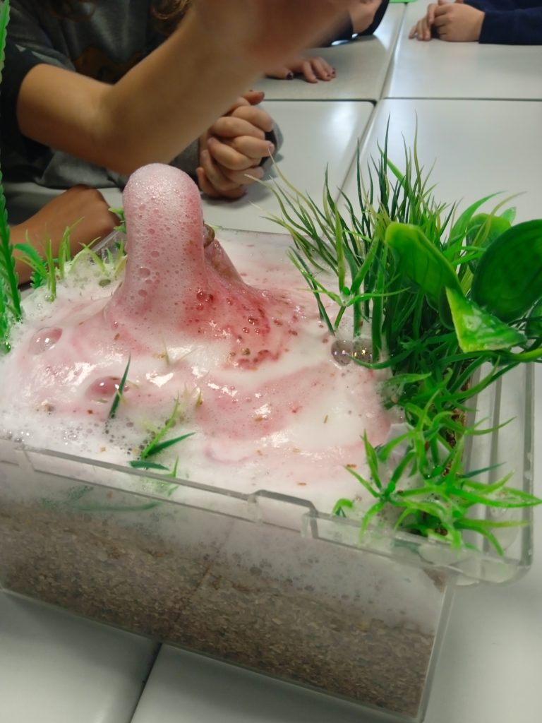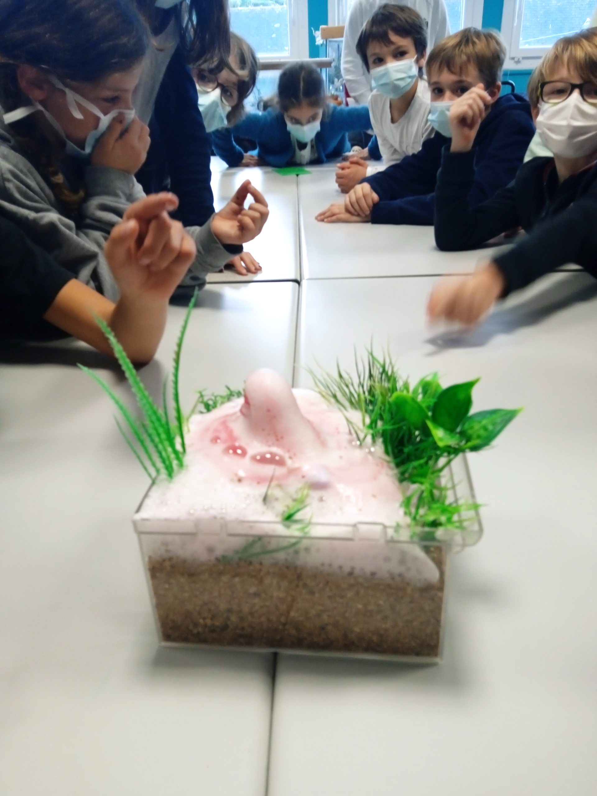 Pour clore le chapitre sur les volcans, les CM2 ont pu recréer une éruption effusive à l’aide de produits courants: