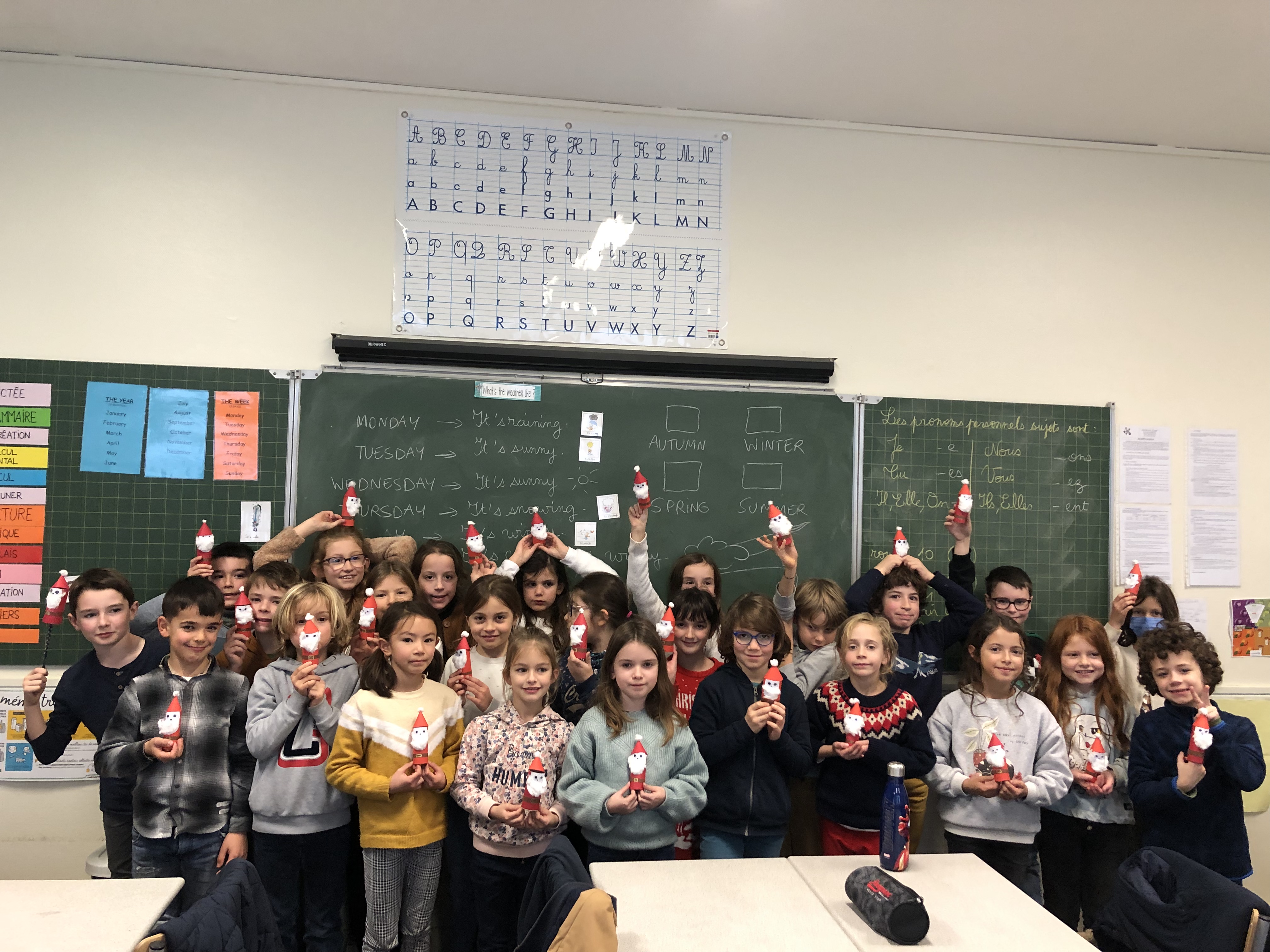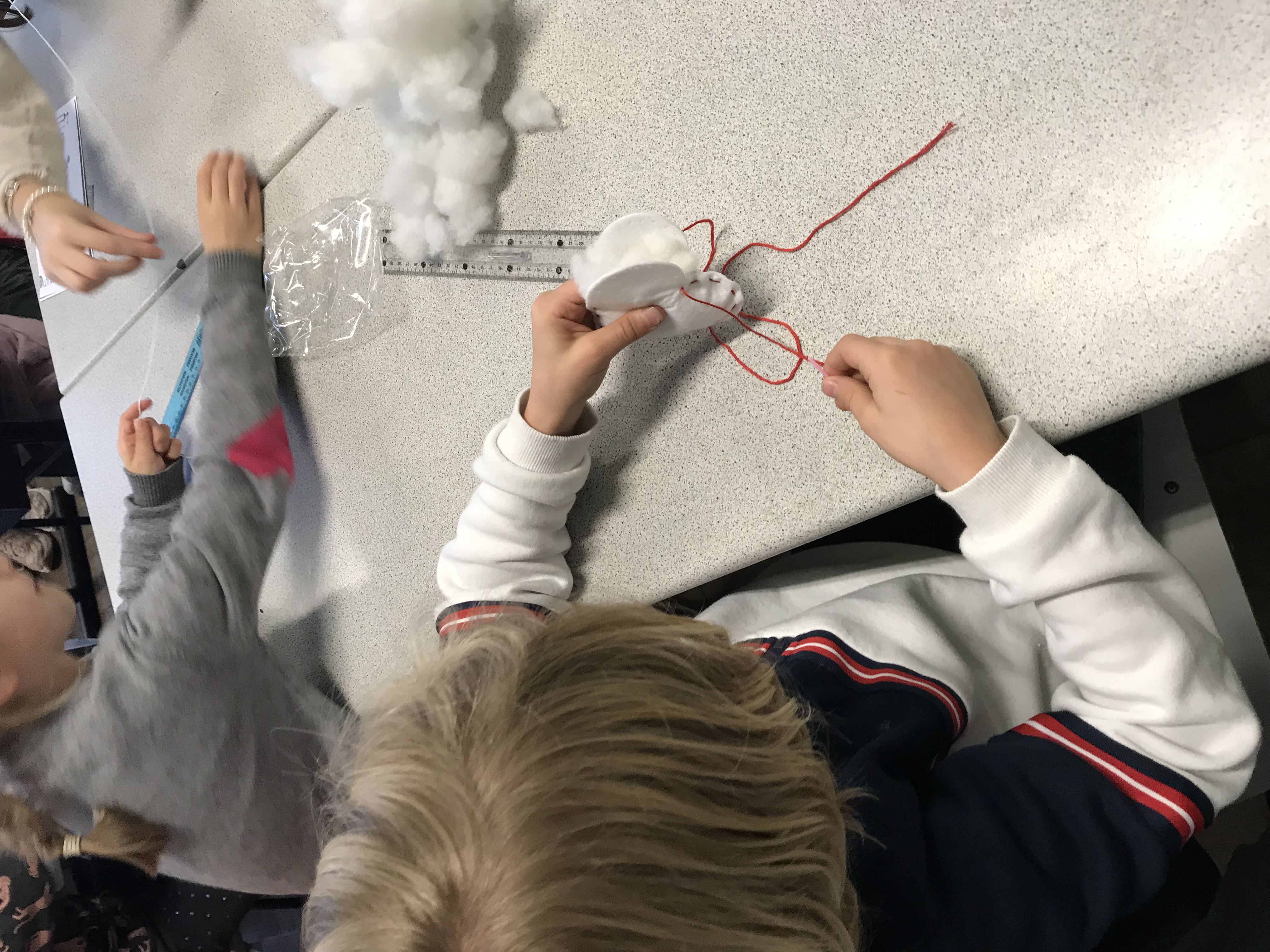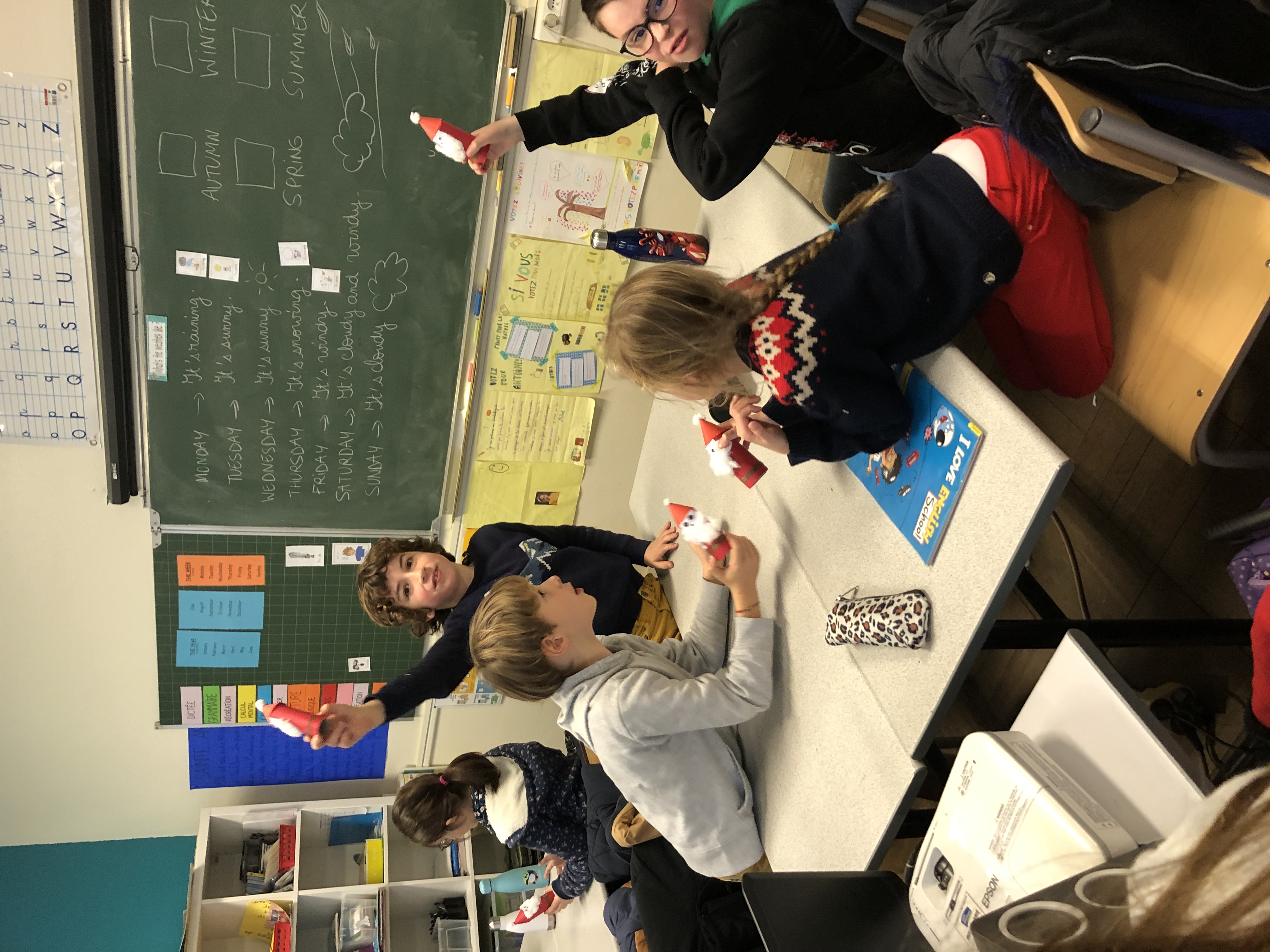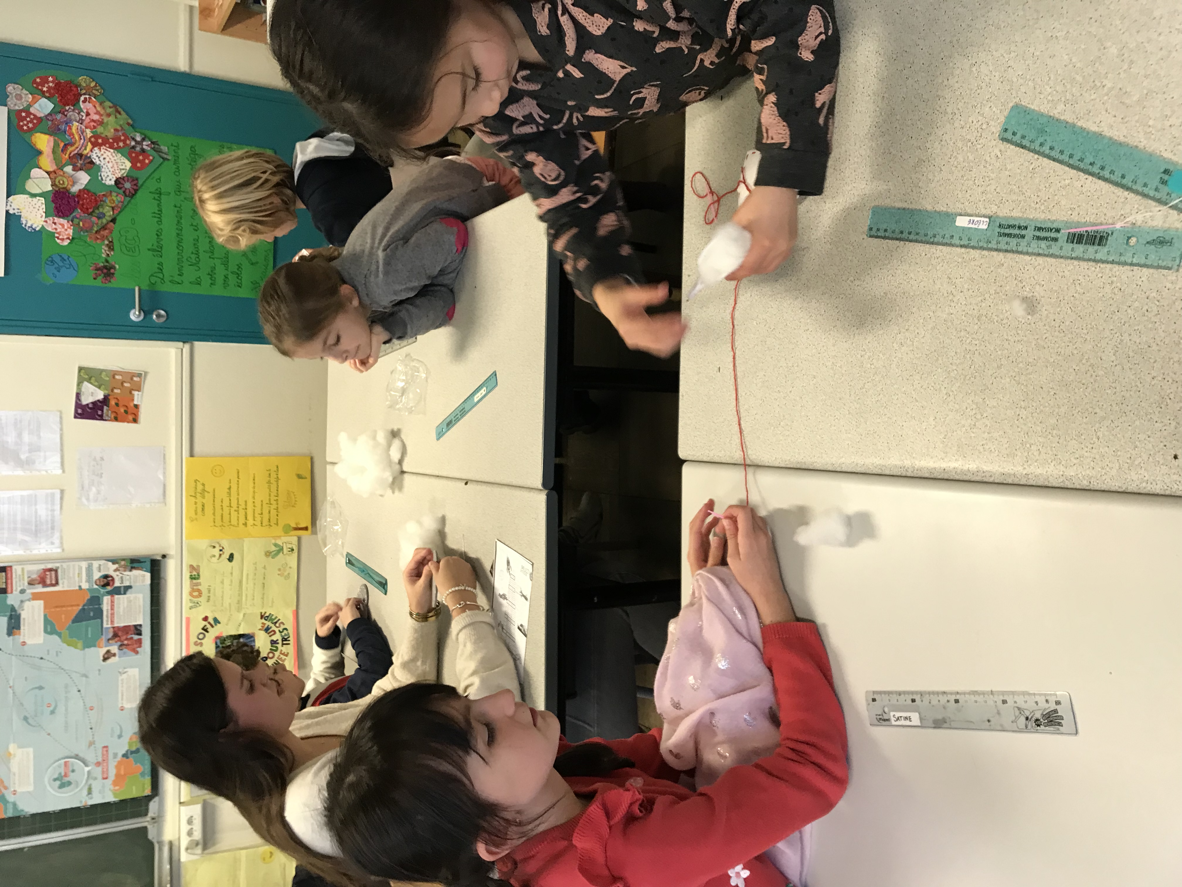 En CE2, c’est avec un plaisir non dissimulé que les élèves ont confectionné des coeurs en feutrine rembourrés pour décorer la maison ou le sapin, ainsi que de jolis pères Noël (avec les explications de Clara, stagiaire professeur des écoles, qui nous accompagne pendant un mois). Merci aussi à Lise, employée par l’OGEC, pour son aide pendant l’atelier de fabrication!