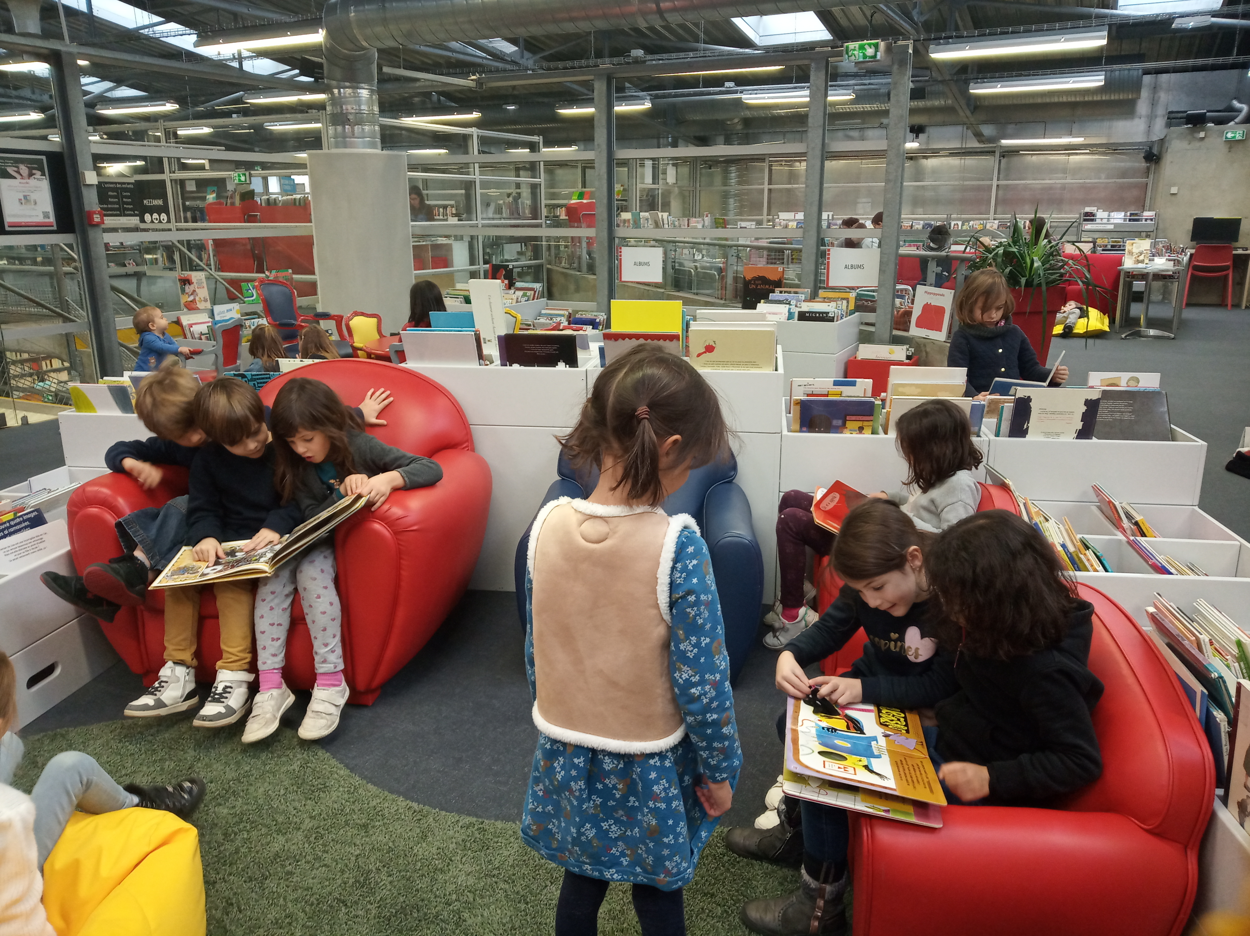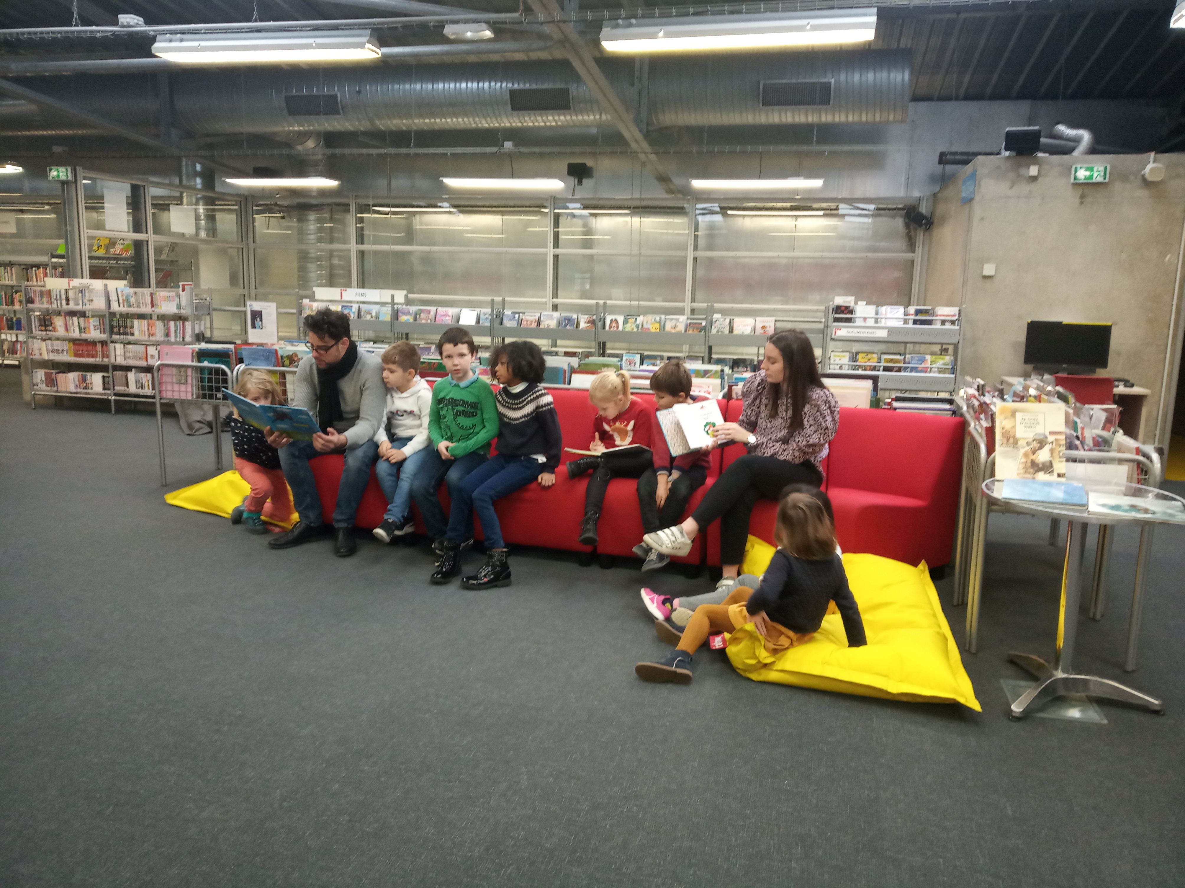 Les CP se sont rendus à la médiathèque où ils ont profité d’une parenthèse littéraire. Ils ont transformé nos accompagnateurs en conteurs. Un moment fort apprécié!