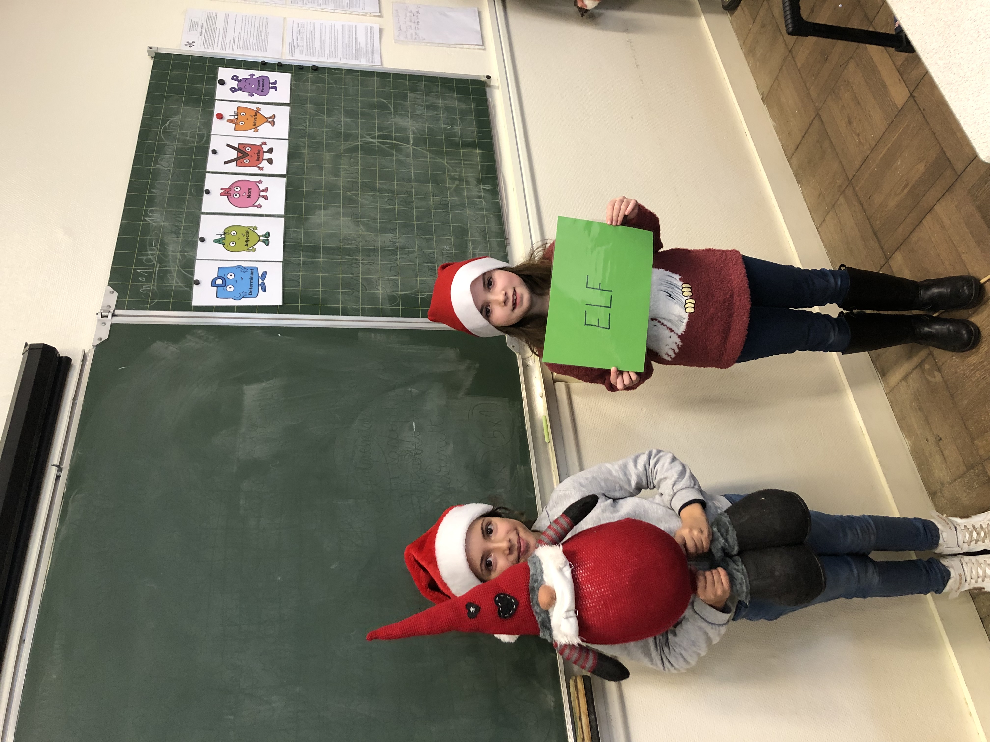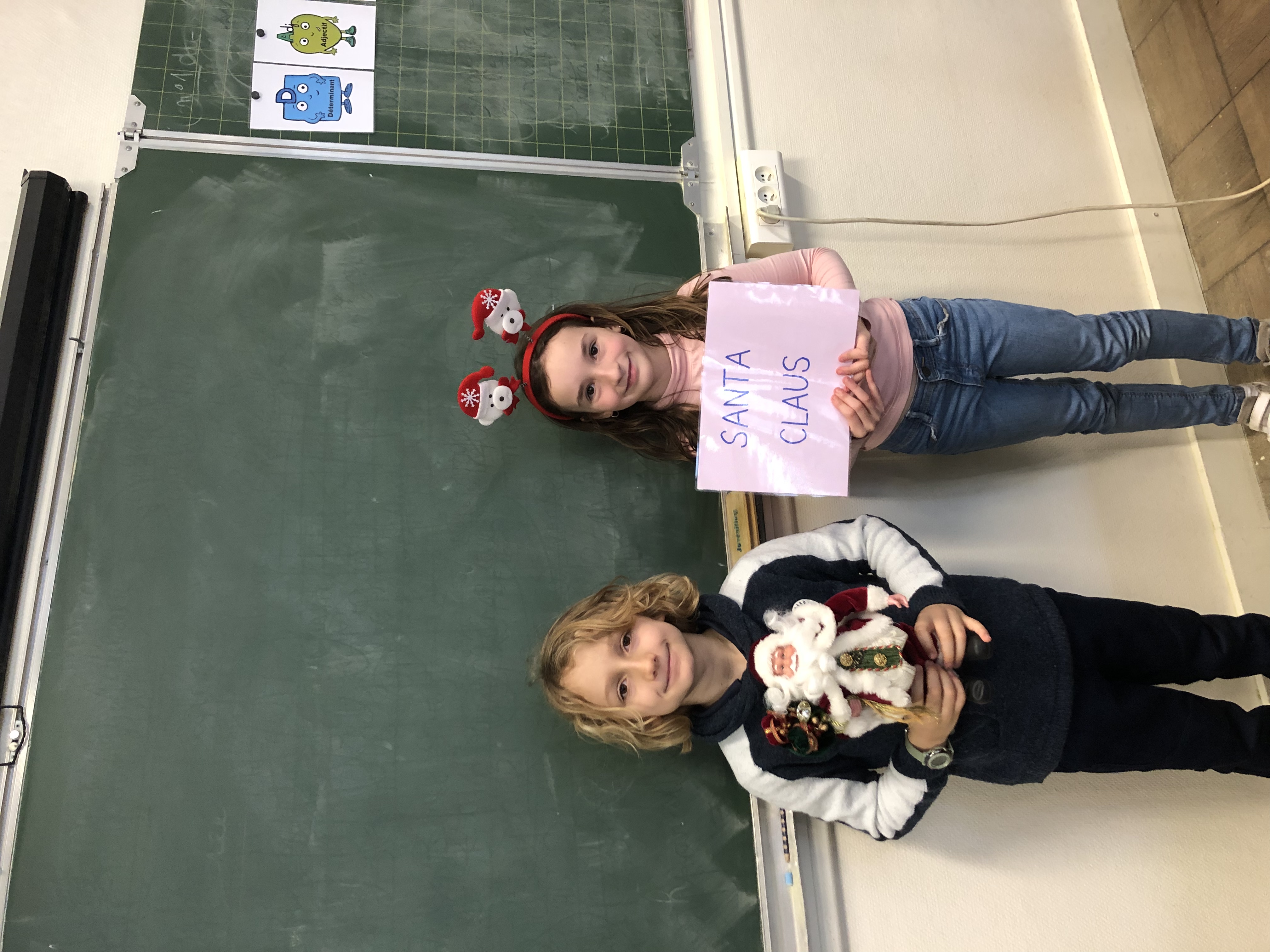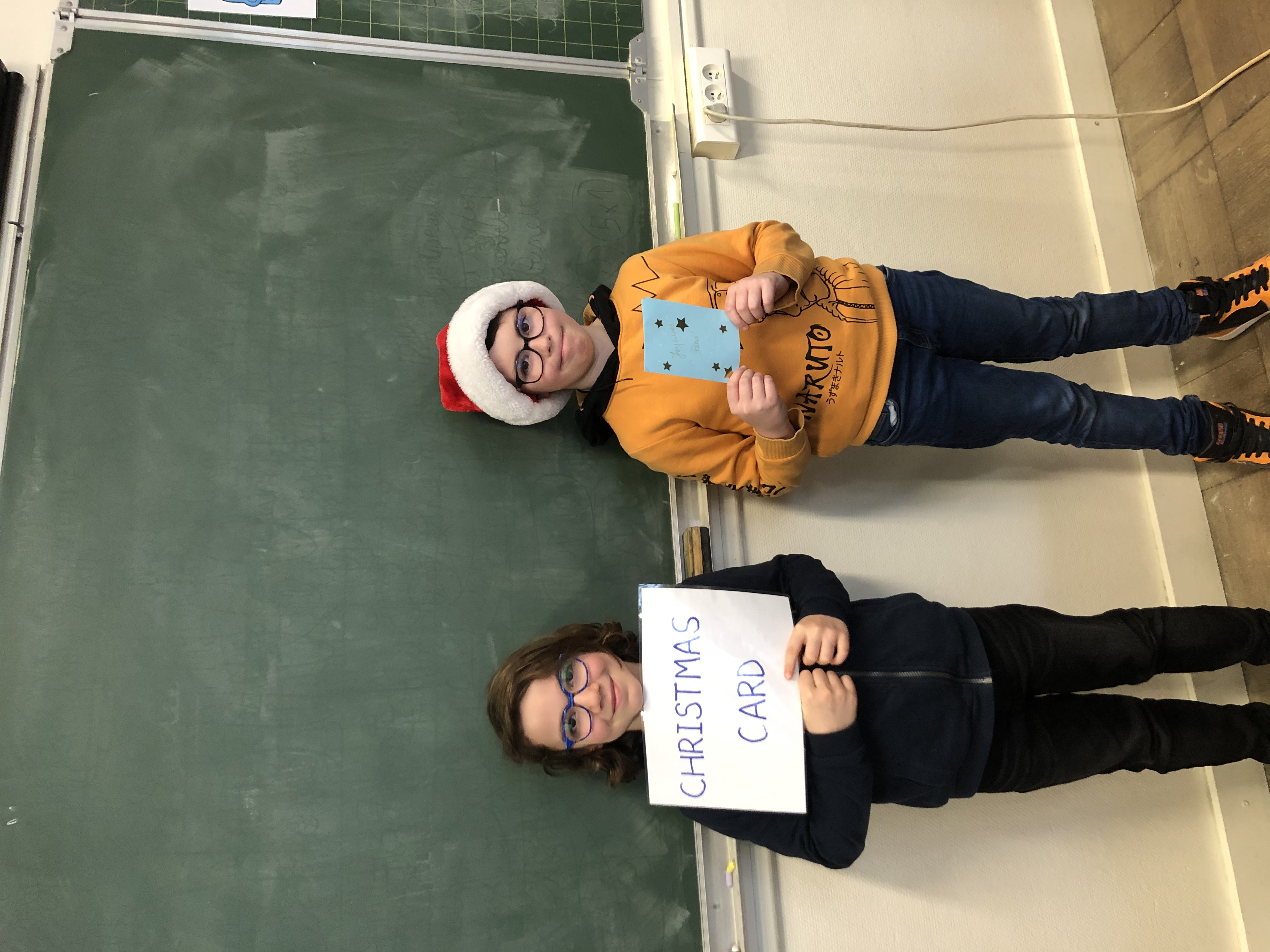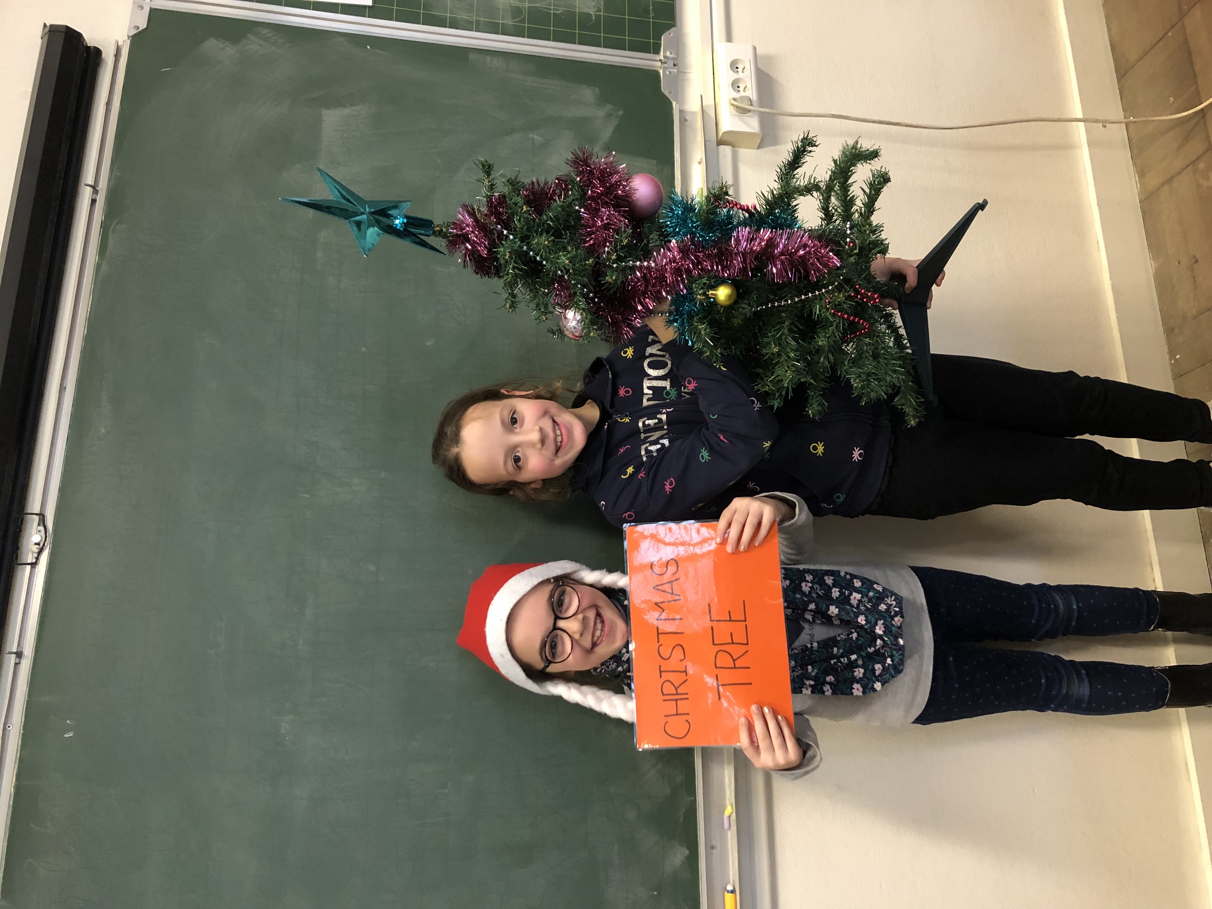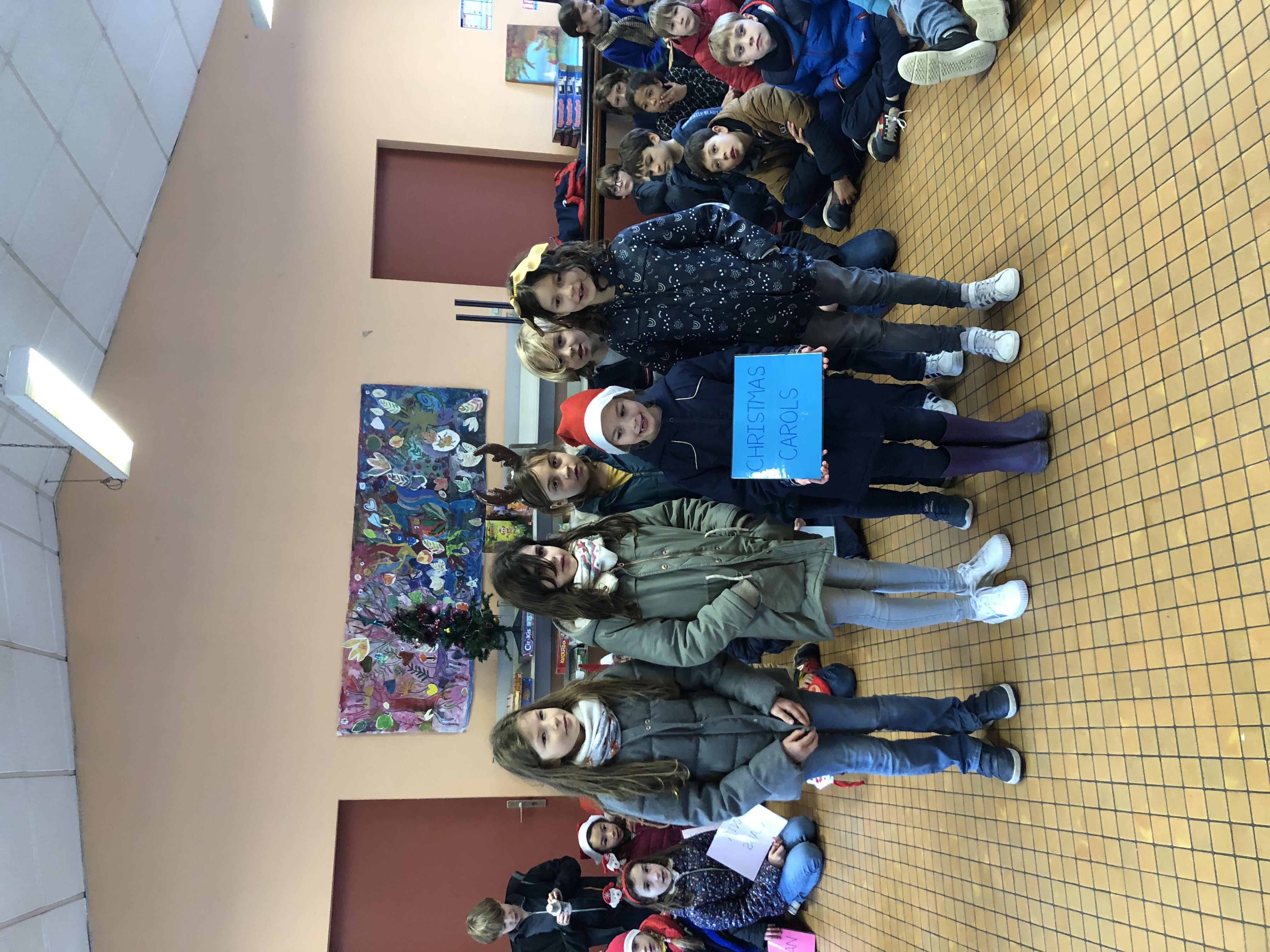 Avec tout leur coeur, les CE2 ont préparé une présentation du vocabulaire de Noël en anglais appris en classe et destinée à l’assemblée d’enfants de l’école. Coiffés de leur bonnet rouge et blanc, ils ont présenté par binôme l’objet (ou le chant 😉 ) pour accompagner leur phrase et leur affiche du mot. What a success!