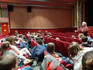 Lundi 30 janvier, une belle surprise attendait les CE1 et CE2 au cinéma Saint-Paul. Contrairement à ce que nous imaginions, il n’allait pas être question de loups cet après-midi ! Mais d’un bateau, le Navigator et de deux personnages à qui il arrive de drôles d’aventures. Le film est en noir et blanc et muet! C’est audacieux ! Très différent de ce que nous sommes habitués à voir. Pourtant la magie du cinéma fonctionne. Progressivement les fous rires envahissent la salle et les enfants ressortent ravis de cette découverte du cinéma d’une autre époque. S’ouvrir au monde, c’est aussi cela.