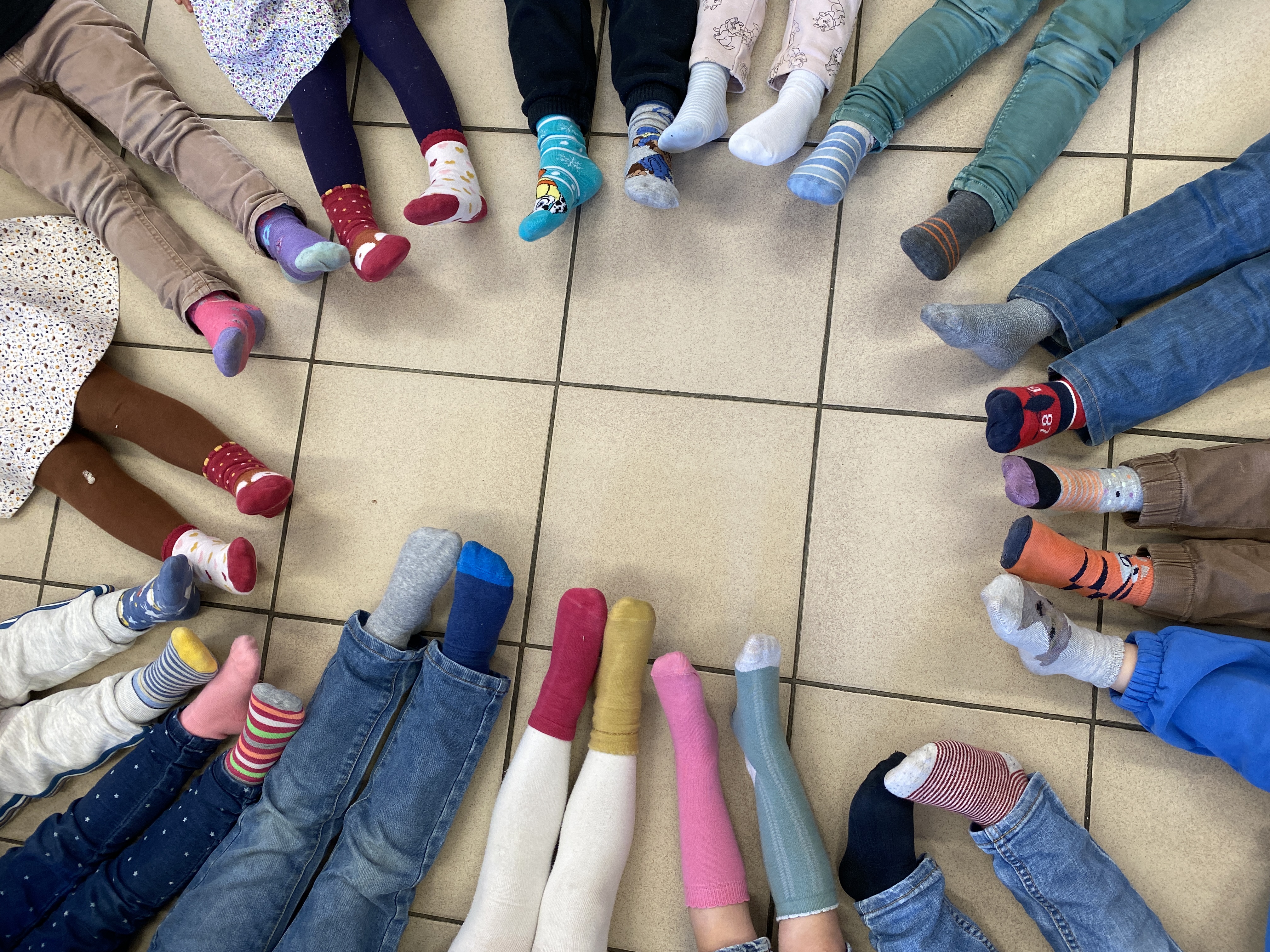 Les enfants sont venus ce matin aux couleurs de la différence ! Des chaussettes multicolores et dépareillées pour s’associer aux personnes trisomiques et à leurs familles et montrer que la différence entre tous est une richesse, même si parfois ce n’est pas si simple à vivre. Merci aux enfants et aux familles pour votre participation.