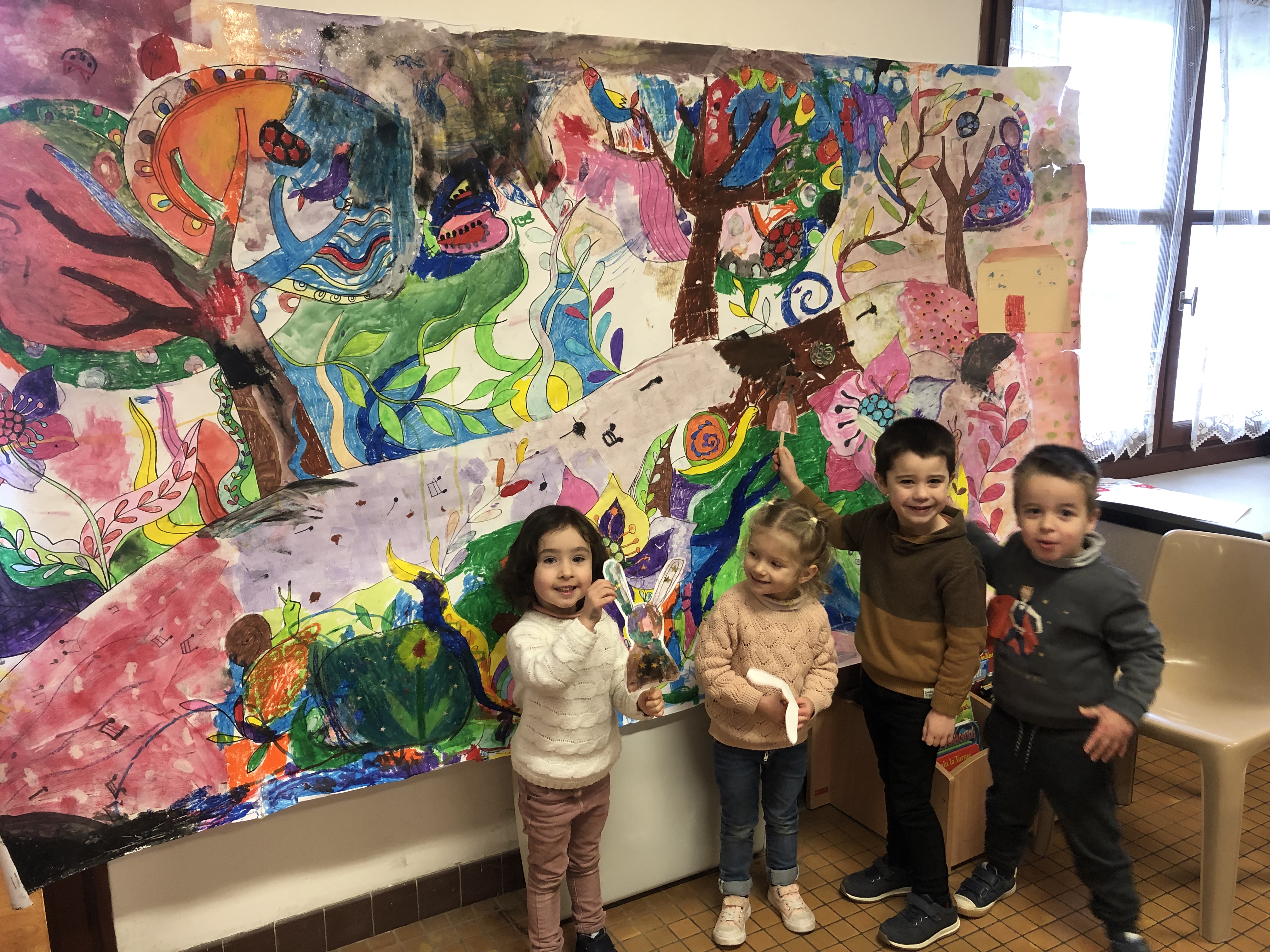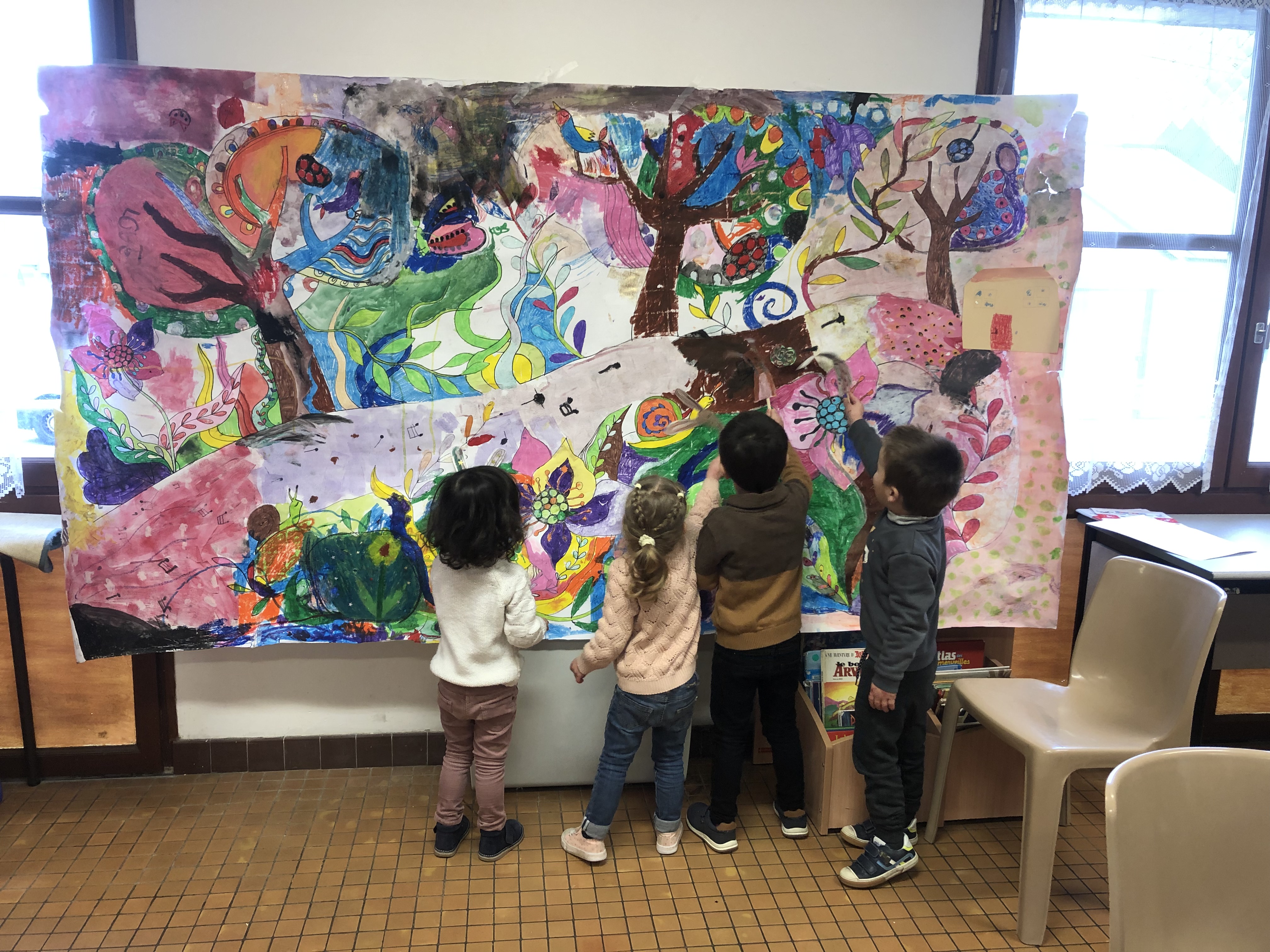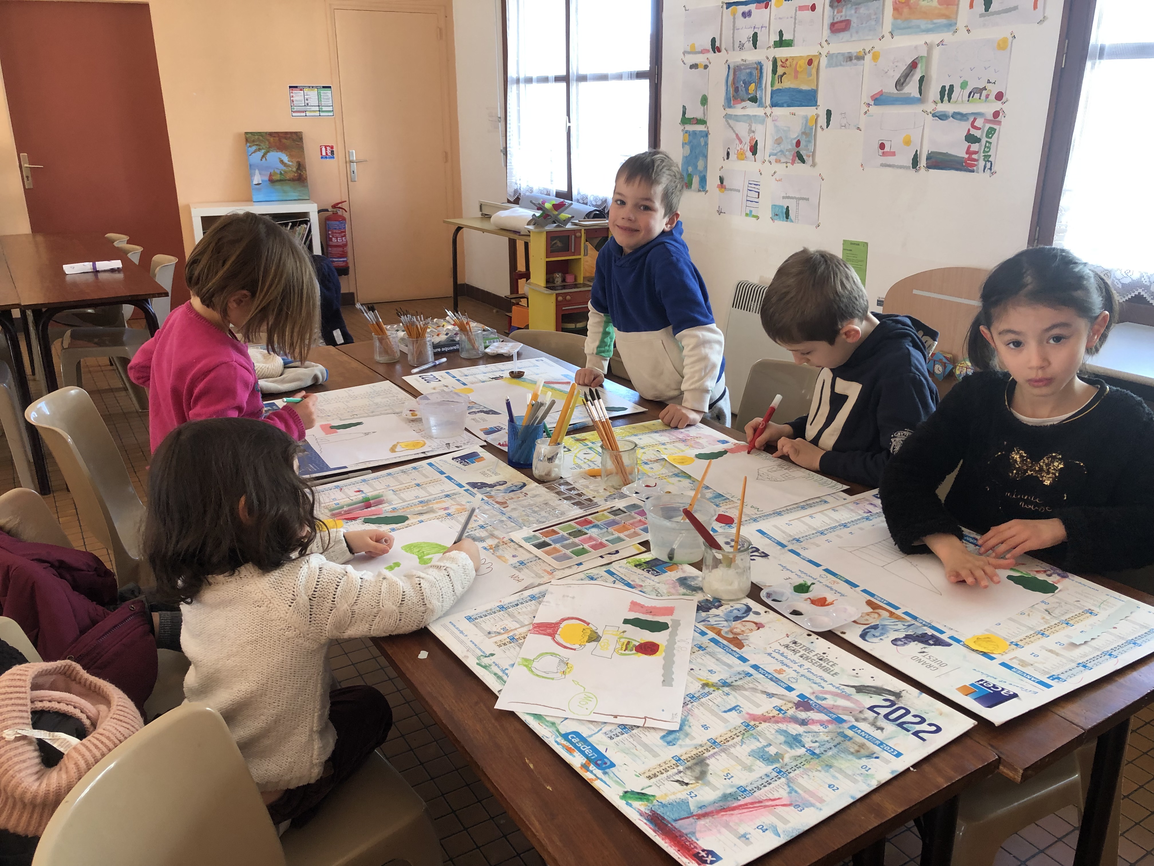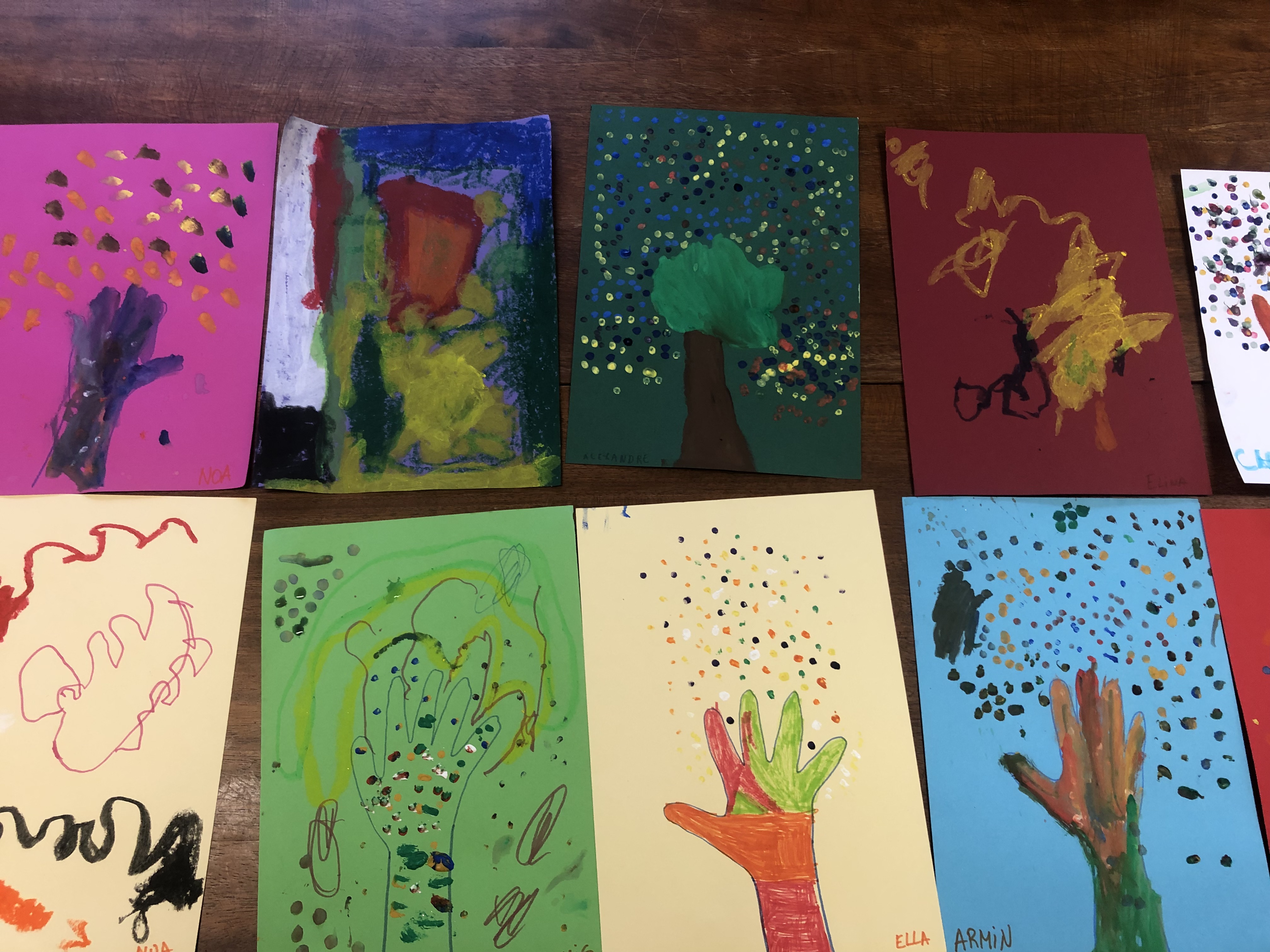 Le mercredi matin, 36 élèves sont accueillis à l’école (sur inscription annuelle). Les enfants sont répartis en 3 groupes en fonction de leur âge et réalisent 3 ateliers tout au long de la matinée par roulement : atelier musique avec Julien, atelier anglais avec Perlita et atelier arts plastiques avec Savina. Voici quelques exemples de leurs productions :
