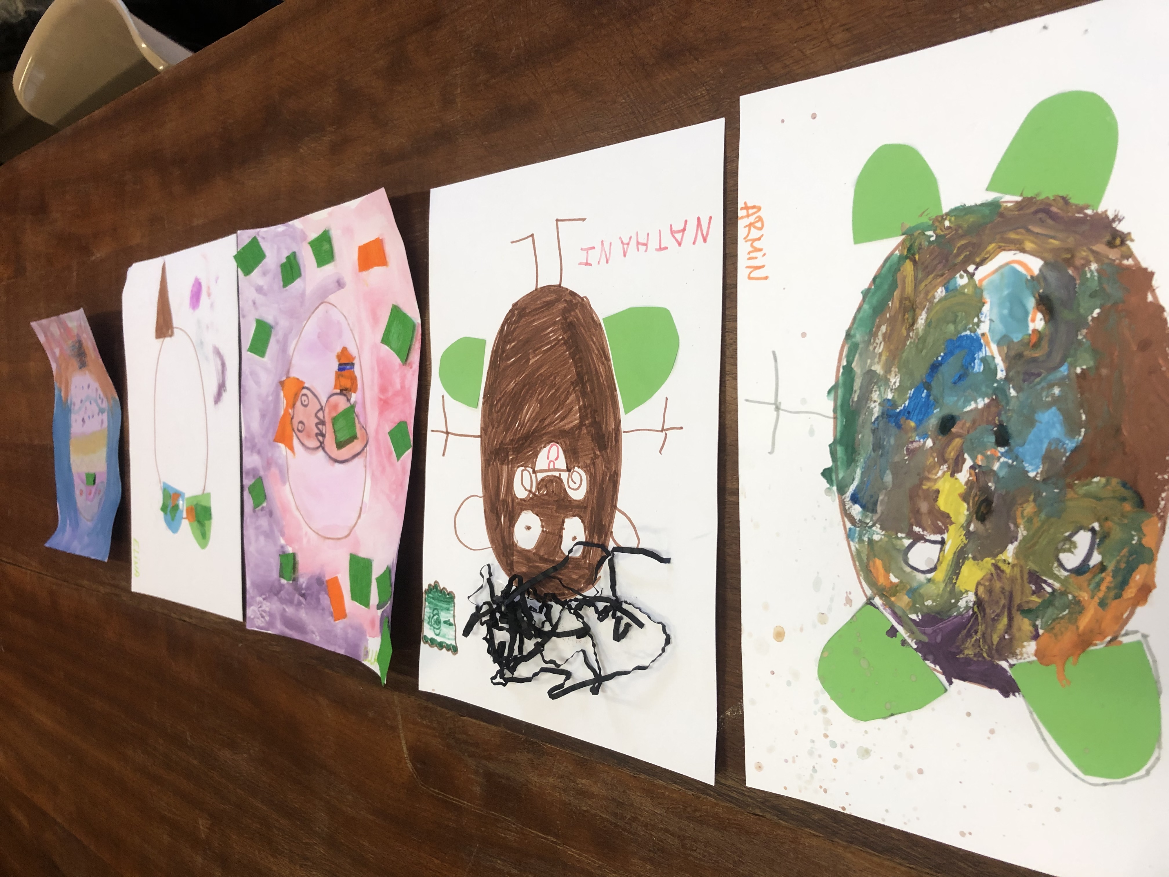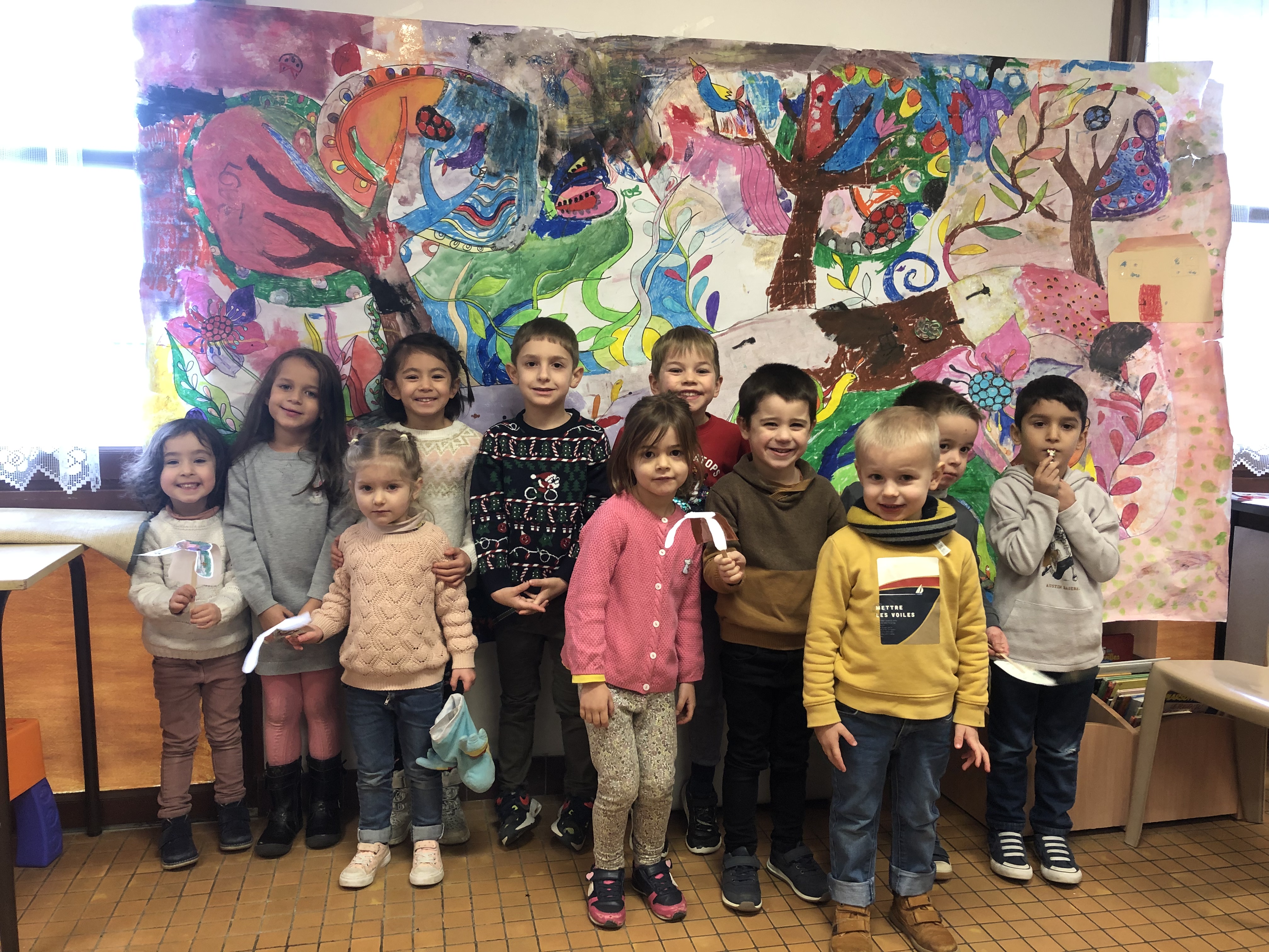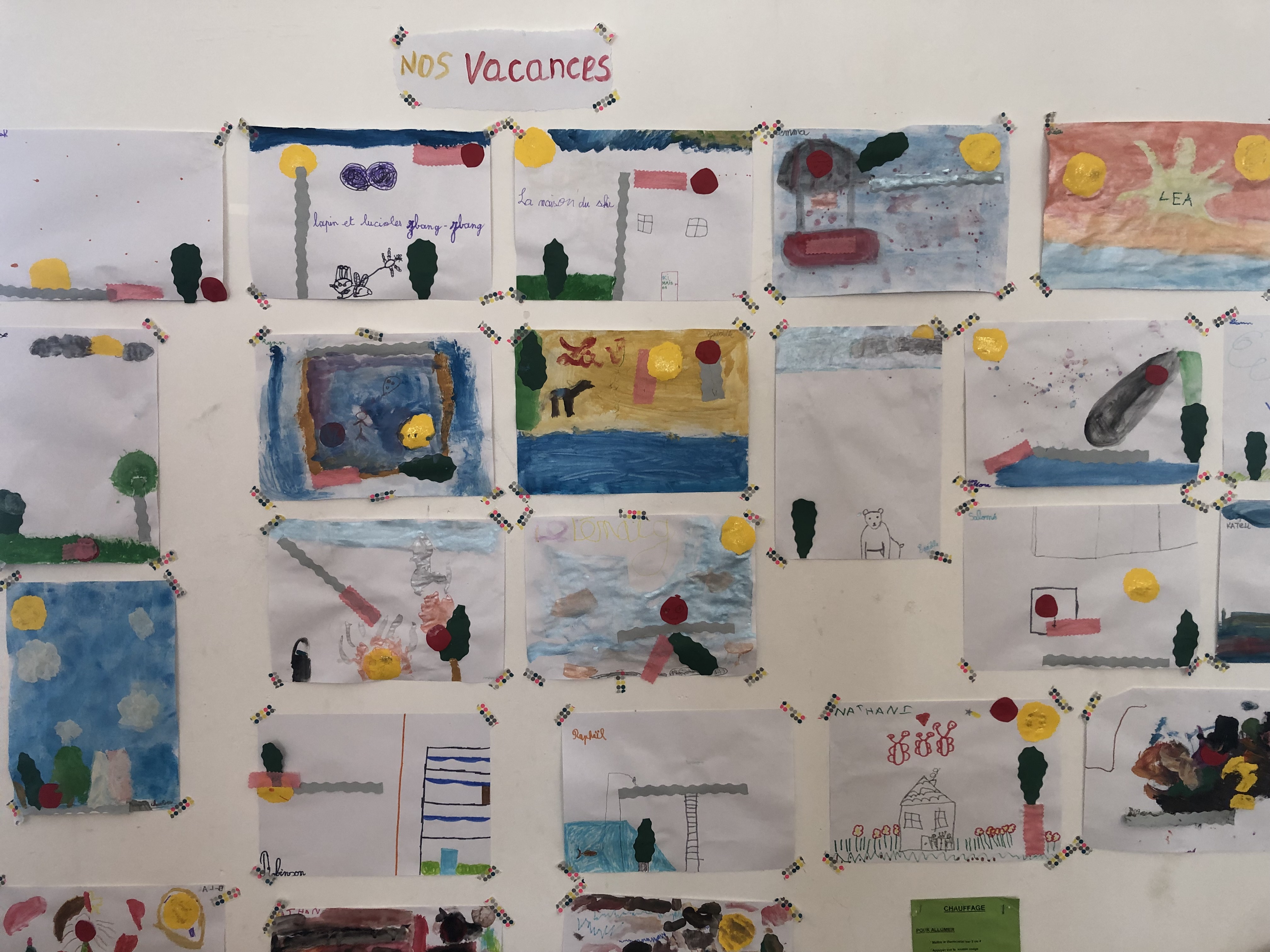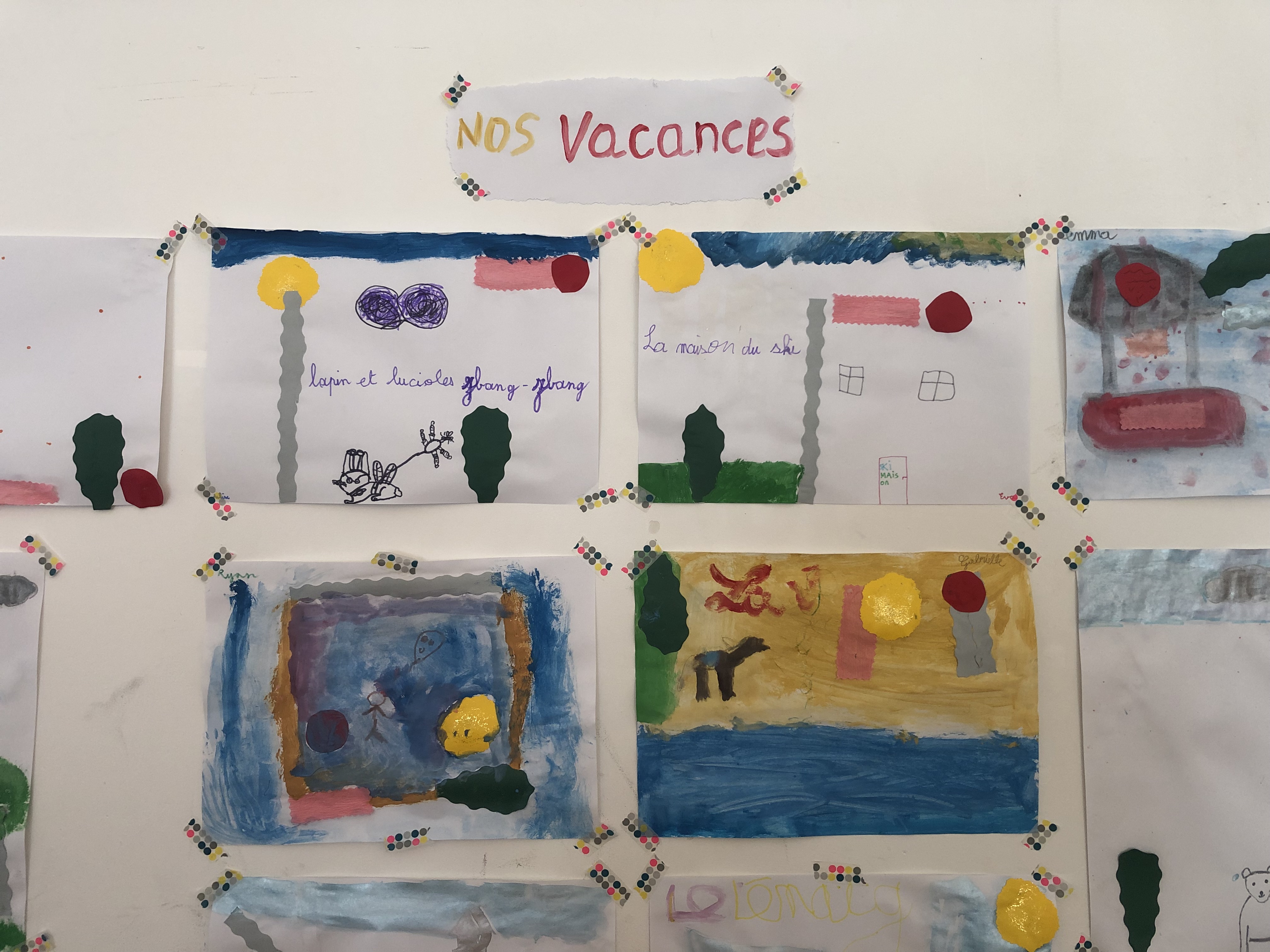 Le mercredi matin, 36 élèves sont accueillis à l’école (sur inscription annuelle). Les enfants sont répartis en 3 groupes en fonction de leur âge et réalisent 3 ateliers tout au long de la matinée par roulement : atelier musique avec Julien, atelier anglais avec Perlita et atelier arts plastiques avec Savina. Voici quelques exemples de leurs productions :