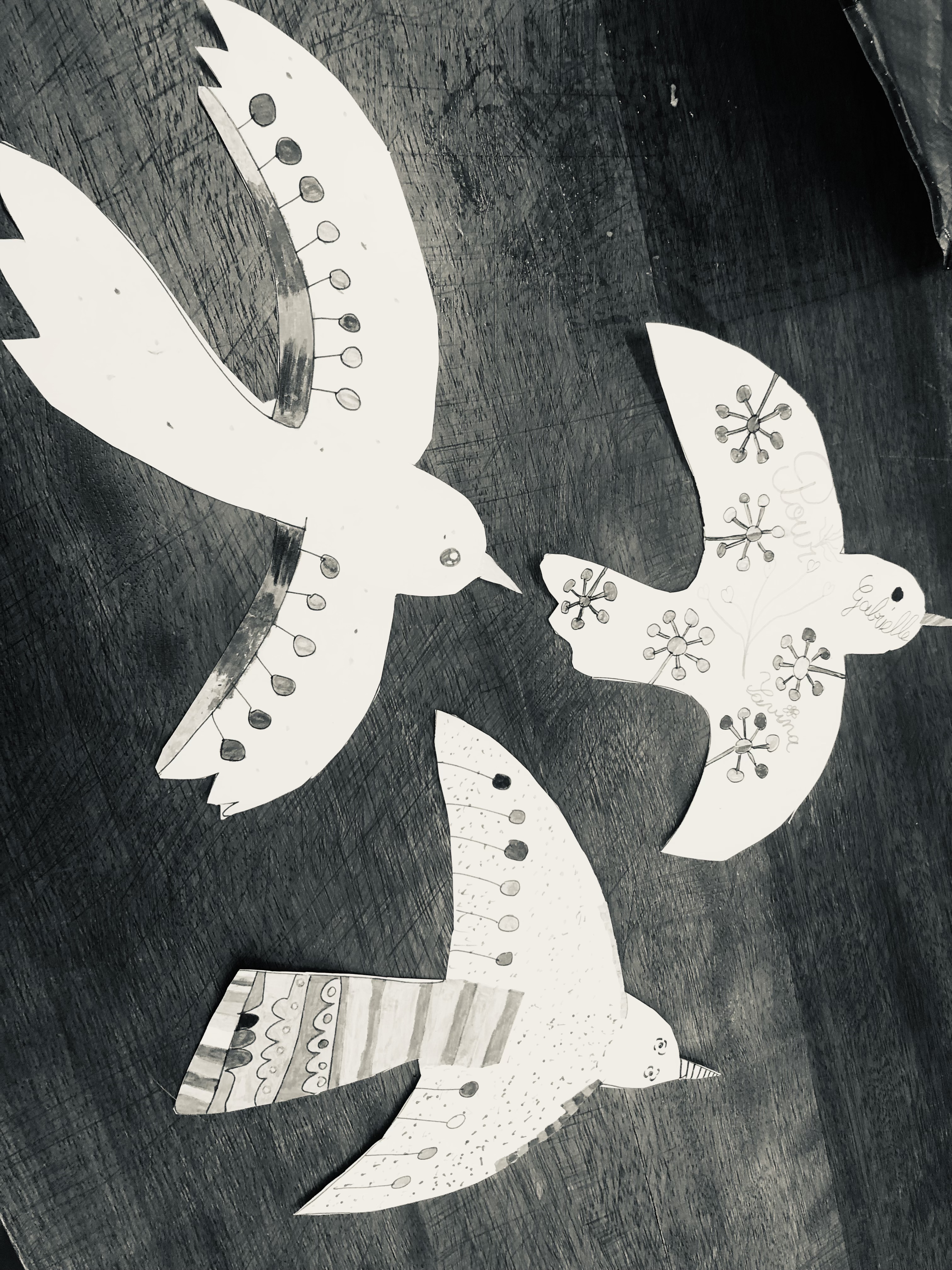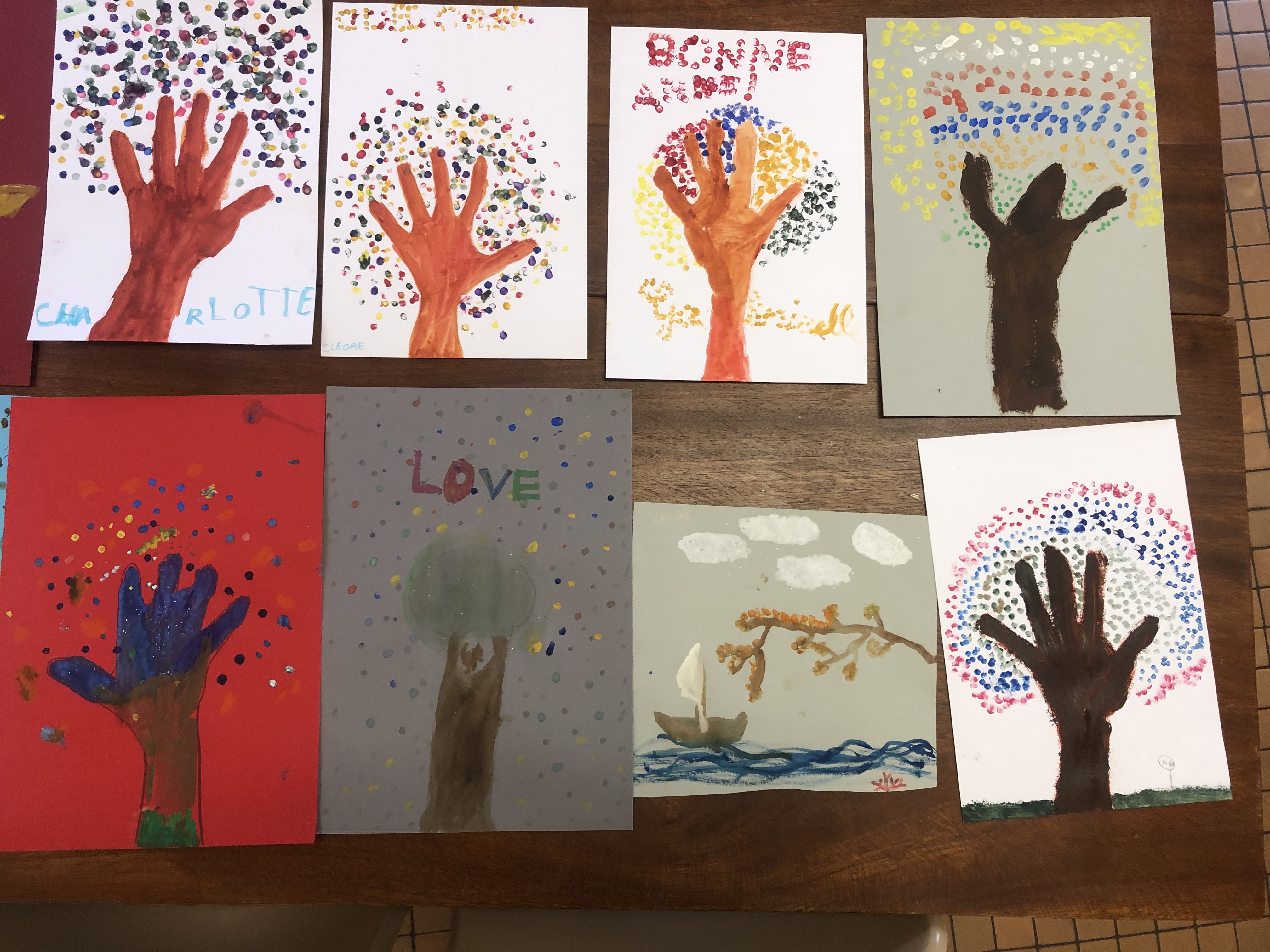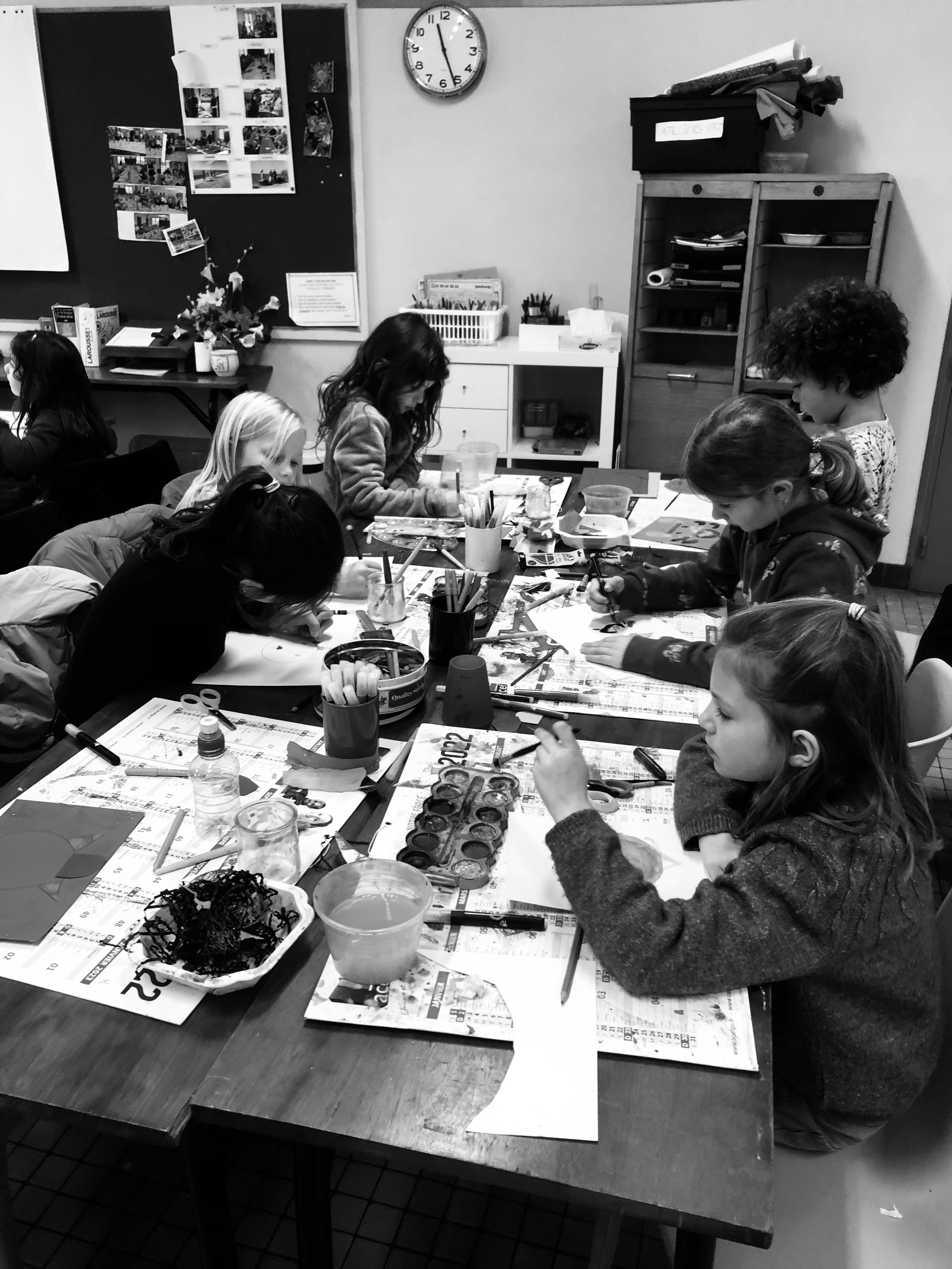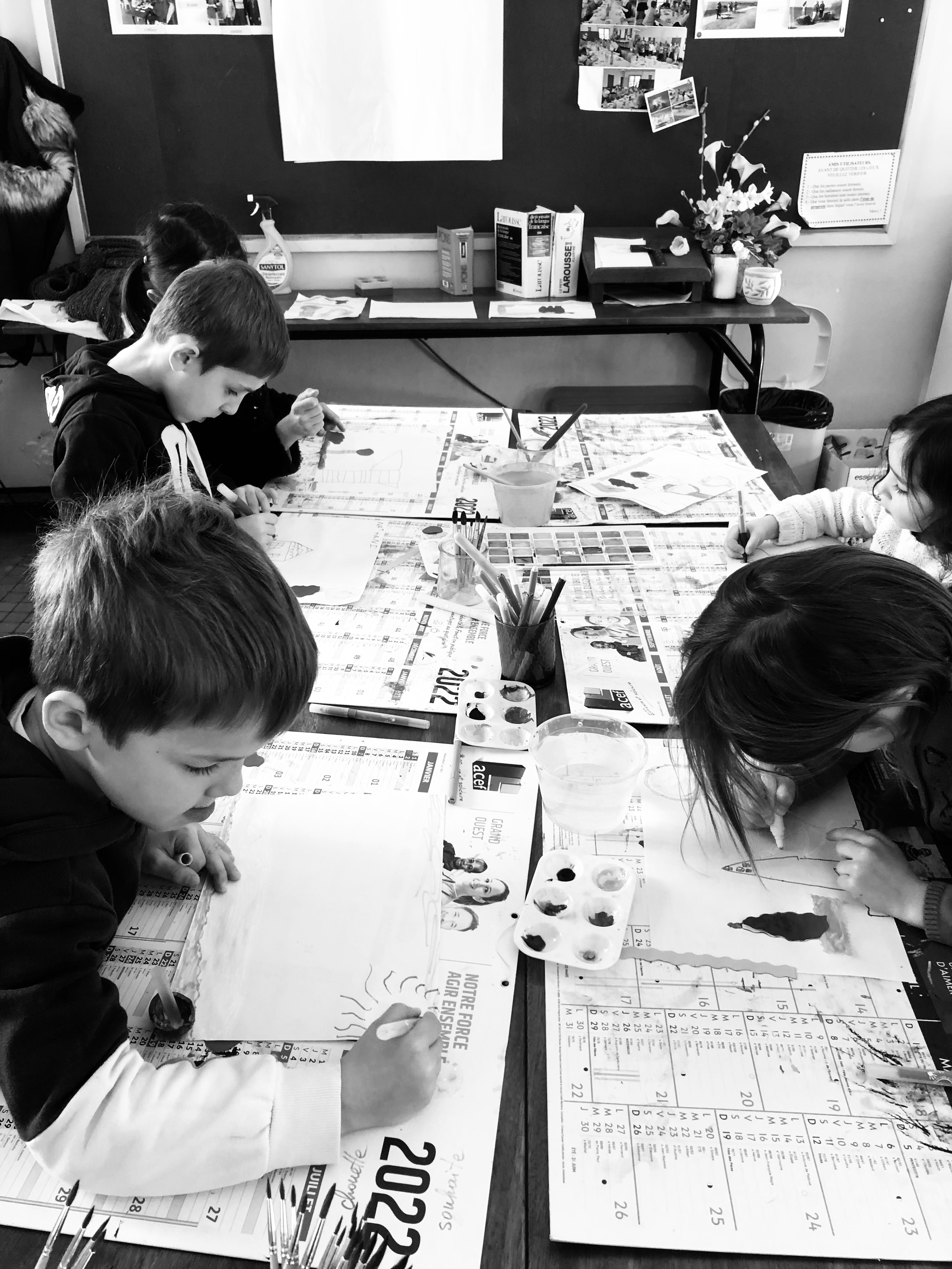Le mercredi matin, 36 élèves sont accueillis à l’école (sur inscription annuelle). Les enfants sont répartis en 3 groupes en fonction de leur âge et réalisent 3 ateliers tout au long de la matinée par roulement : atelier musique avec Julien, atelier anglais avec Perlita et atelier arts plastiques avec Savina. Voici quelques exemples de leurs productions :